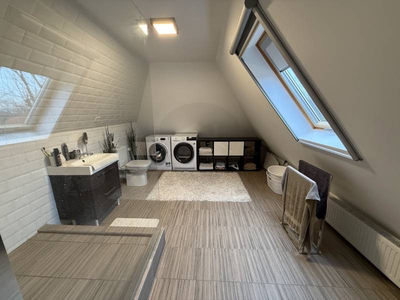 Ha fontos Önnek a békés környezet, a kiváló műszaki állapot és az azonnal költözhető otthon, akkor ezt az ingatlant érdemes megnéznie!A 1995-ben épült, 698 m²-es telken elhelyezkedő, tégla falazatú, szigetelt családi ház cserép tetőfedéssel készült, állapota újszerű. Az elmúlt években több korszerűsítés is történt, így valóban csak költözni kell.Műszaki tartalom:• 2021-ben beszerelt Bosch kondenzációs kazán• Radiátoros hőleadás• 3 db hűtő-fűtő klíma• Modern, 3 rétegű nyílászárók• 3×25 Amper + H tarifa• Kiépített wifis kamerarendszer• Riasztó• Elektromos kapu és Hörmann garázskapuPraktikus, jól átgondolt elosztásFöldszint:• Előtér• Tágas nappali-étkező• Konyha kamrával• Fürdőszoba• Külön mellékhelyiség• 1 hálószobaA nappaliból közvetlen kijárat nyílik a 40 m²-es teraszra, amelyből 25 m² fedett. A pergola gondozásmentes anyagból készült, akárcsak az utcafronti kerítés – esztétikus és időtálló megoldás.Tetőtér:• 2 kényelmes méretű szoba• Gardrób helyiség• Fürdőszoba WC-velSzuterén szint:• Gépészeti helyiség• Tároló• Műhelynek vagy hobbihelyiségnek ideális tér• GarázsA ház ideális választás családok számára, akik nyugodt, biztonságos környezetben szeretnének élni, mégis elérhető távolságban a fővárostól. Zsámbék kiváló infrastruktúrával, óvodával, iskolával, bevásárlási lehetőségekkel rendelkezik.Ez az otthon egy valódi „kulcsrakész” lehetőség – jogilag rendezett, szerethető környezetben.Amennyiben egy igényes, jól karbantartott, azonnal költözhető családi házat keres Zsámbékon, várom megtisztelő megkeresését! |