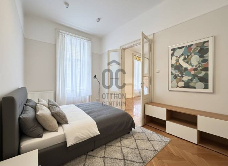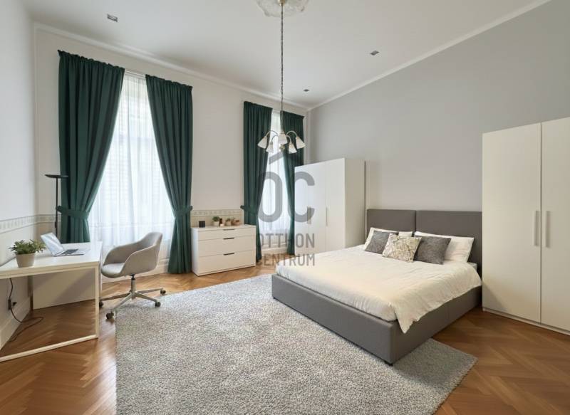 A belváros szívében, a körúttól mindössze egy utcányira kínálunk megvételre egy tágas, 114 m²-es polgári lakást, amely adottságainak köszönhetően kiváló választás nagyvonalú otthonnak, értékálló befektetésnek, illetve igényes iroda vagy rendelő kialakítására is.Az ingatlan körülbelül 20 évvel ezelőtt teljeskörű műszaki felújításon esett át, amely magában foglalta a villamoshálózat, valamint a víz- és csatornarendszer cseréjét. Néhány évvel ezelőtt korszerű gázkazán került beépítésre. A lakás jelenleg átlagos, jól használható állapotban van, így azonnal birtokba vehető, ugyanakkor kiváló alapot nyújt egy igény szerinti modernizáláshoz. A tágas belső terek és a jól alakítható alaprajz lehetőséget biztosítanak arra, hogy az ingatlan akár két, vagy megfelelő tervezéssel akár három különálló egységre legyen osztható, ami befektetési célú hasznosítás esetén kiemelkedő potenciált jelent. A nagy ablakfelületeknek köszönhetően az ingatlan kifejezetten fényes és világos, a természetes fény egész nap kellemes térérzetet biztosít.A társasház rendezett és folyamatosan karbantartott, a közelmúltban megtörtént a fő víz- és csatornahálózat, valamint a fő gázvezeték cseréje is. Az ingatlanhoz tartozik egy körülbelül 7 m²-es, zárható, saját tároló a száraz pincehelyiségben, ahol levegőcserélő és páramentesítő rendszer biztosítja az ideális környezetet. Ez a belvárosban ritka értéknövelő tényező, amely néhány évvel ezelőtt került kialakításra.Az elhelyezkedés kimagasló. A körút közelsége gyors és kényelmes közlekedést tesz lehetővé, ugyanakkor a lakás nyugodt városi környezetben található. A Nyugati pályaudvar néhány perc sétával elérhető, az Oktogon körülbelül 8–10 perc gyalogtávolságra található, az 1-es metró megállója szintén pár percen belül elérhető. A környéken számos villamos- és buszjárat közlekedik, a bevásárlási lehetőségek, szolgáltatások, éttermek és kávézók pedig közvetlen közelben elérhetők, ami lakó- és irodai funkció esetén egyaránt jelentős előnyt jelent.Ez az ingatlan ideális választás mindazok számára, akik a belváros egyik legkeresettebb részén keresnek nagy alapterületű, világos, jól alakítható ingatlant, amely hosszú távon is stabil értéket képvisel, legyen szó otthonról, befektetésről vagy professzionális irodai használatról.(A terek jobb átláthatósága érdekében a hirdetési képeken a bútorzat eltávolításra került, továbbá néhány helyiség inspirációs jellegű látványtervként szerepel.) |