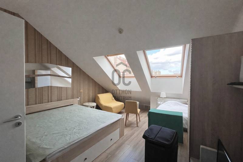 Az ingatlan központi elhelyezkedése, csendes fekvése és költözhető állapota miatt saját részre és befektetésre is kiváló lehetőség.Jelenleg is bérbe van adva, de rövid időn belül birtokba is vehető. A vételár euróban fizetendő. Irányár: 201000 euróAz épületről:- 2016–17-es építés, liftes, tégla építésű ház- 5 szintes, 100 albetéttel - rendezett ház, kulturált lakóközösség- szigetelt épület, alacsony rezsi költséggel rendelkező ingatlanA lakásról:- a tulajdon lapon bejegyzett méret: 43 nm- lemért bruttó alapterület: 54 nm- 190 cm alatti terület: 11 nm és az ebből számított, értékesített méret: 49 nm- (a tulajdon lapon ezért szerepel 43 nm)Fontos: a lakás érzésre és használatban is a 49 nm-nek megfelelő életteret ad!- 2 külön nyíló szoba, klímával felszerelt ingatlan- a teljes bútorzat és gépesítés a vételár része- konyha/étkező külön térben- zuhanyzós fürdőszoba (wc-vel egyben)- tetőtéri kialakítás- V. emelet – elszeparált elhelyezkedés- utcai nézetA konyha és a mellette lévő fal bontható → igény esetén egybenyitható, amerikai konyhás nappali kialakítható.Jelenlegi formájában jól szeparált, bérbeadásra ideális.Költségek:- közös költség: 510 Ft / nm- házközponti fűtés egyedi mérőkkel- fűtés költsége: kb. 3–4000 Ft / hó- külön vízóra- alacsony fenntartási költség-teremgarázshely bérelhető 35000 Ft / hóOpcionálisan teremgarázshely vásárolható, igény esetén ennek értéke megegyezés kérdése. Bérlésre van lehetőség, ennek díja 35000 ft / hó.Lokáció:A Corvin-negyed közvetlen közelében elhelyezkedő társasház, az M3-as metró, 4–6 villamos pár perc sétára található. Egyetemek, irodák, szolgáltatások sétatávolságra elérhetők.Ideális választás befektetésnek, első lakásnak, valamint azonnal kiadható, hozamtermelő ingatlan.Hitelre történő vásárlás esetén bankfüggetlen pénzügyi szakértőnk segítségével megtalálhatja az Ön számára legkedvezőbb megoldást.A tanácsadás ingyenes, keressen bizalommal! |