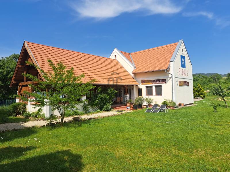 Köveskálon, falu szélén, nyugodt természeti környezetben ajánlom figyelmébe ezt a 2012-ben épült, két szintes családi házat.Korábban étteremként üzemelt, a tulajdonosok a felső szinten laktak.Így mostani elosztását tekintve, az alsó szinten (120nm) az étteremhez szükséges helyiségek találhatók, melyhez 60nm-es fedett terasz kapcsolódik.A felső szinten két szoba, és két fürdőszoba van jelenleg, de az alsó galériás rész megszüntetésével, egy 50nm-es bővítésre került sor, így akár további szobák, nappali, vagy konyha is kialakítható. Az étterem újra üzemeltethető, minden engedéllyel rendelkezik, de akár vendégháznak is átalakítható!Az épület összközműves, fűtését gáz kazán látja el, az emeleten klíma biztosítja a hűs levegőt nyáron.Az udvaron egy fúrt kút is található, mely akár az egész ház vízellátására is alkalmas a megfelelő gépészet bekötése után.A 11483nm-es ingatlan, a 2740 nm-es telken található házat és ezen kívül 5 belterületi kialakított telket és egy erdővédelmi területe foglal magába.Tovább értékesíthető, ha nincs rá szükség. De falu széli elhelyezkedésének köszönhetően, akár lótartásra is használható.Az ingatlan jó állapotú, gyönyörű környezetben található, és sok lehetőséget rejt, üzleti célból kiváló elhelyezkedéssel!A tulajdonos 13. kerületi budapesti lakást beszámol a vételárba, külön megegyezéssel!Amennyiben kérdése merülne fel az ingatlannal kapcsolatban, vagy szeretné azt megtekinteni, kérem keressen a megadott elérhetőségek egyikén!Az adatok kizárólag a megbízóink által rendelkezésünkre bocsátott információkon alapulnak. Fentiekre tekintettel, az adatok teljességéért, helyességéért és aktualitásáért nem vállalunk felelősséget.Az árváltozás, adatmódosítás és közbeni értékesítés jogát fenntartjuk, mindezekért jogi felelősséget nem áll módunkban vállalni. |