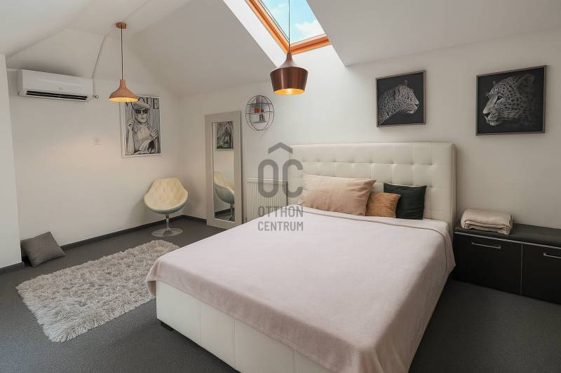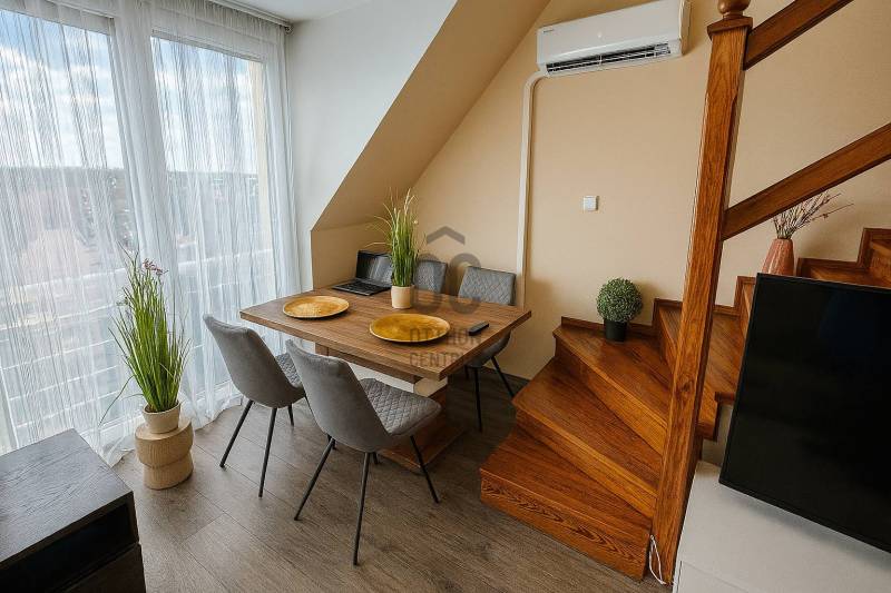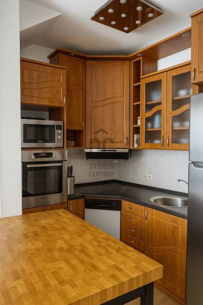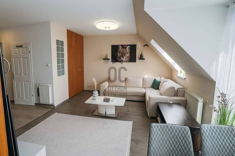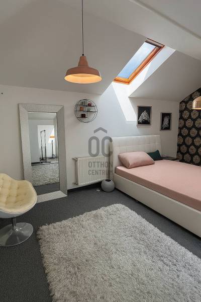 Budapest, XVII. kerületének egyik legkedveltebb, modern és csendes kertvárosi részén, a Madárdomb ANNA házban eladó egy újszerű, igényesen kialakított és teljesen felszerelt lakás.Az ingatlan a liftes társasház 4. emeletén található, 62m²-es, kétszintes (tetőtéri) kialakítású. Az alsó szinten egy világos, tágas, amerikai konyhás nappali kapott helyet, amelyhez franciaerkély kapcsolódik, valamint egy praktikus, lépcső alatti tároló. A felső szinten található a kifejezetten nagy méretű hálószoba, amely alapterületének köszönhetően (bruttó 25m², hasznos 19m²) igény szerint akár két különálló térre is osztható, így a lakás rugalmasan alakítható két hálószobássá. A kellemes hőérzetről mindkét szinten hűtő-fűtő klímaberendezés gondoskodik.A vételár részét képezi egy saját, zárt parkolóhely, ami ezen a környéken kiemelt értéket képvisel.Az ingatlanhoz tartozó berendezések:-beépített szekrények-egyedi konyhabútor-beépített mosogatógép-elektromos főzőlap-hűtőszekrény-beépített sütő(A bútorzat további elemei megegyezés szerint maradhatnak).A társasház és környezete:*akadálymentesített (rámpás kialakítás)*lift*belső, zárt kert kis játszótérrel*kerékpártároló*kamerával megfigyelt lépcsőház és parkoló*déli fekvés*kis és rendezett lakóközösségElhelyezkedés és infrastruktúra:*buszmegálló 30 méterre (Örs vezér tere - M2 metró)*uszoda és szauna a lakóházzal szemben*bölcsőde, óvóda, iskola, vegyesbolt, gyógyszertár, cukrászda 70 méteren belül mind*Tesco 2 percre kocsivalEz a lakás ideális választás pároknak, kis családoknak vagy befektetésnek egyaránt, akik nyugodt, zöld környezetben keresnek modern, azonnal költözhető otthont.Megtekintéshez és további részletekért keressen bátran telefonon!Ez az ingatlan a \"Felező csomag\" megbízási portfólióhoz tartozik. Részletek az Otthon Centrum weboldalán. |