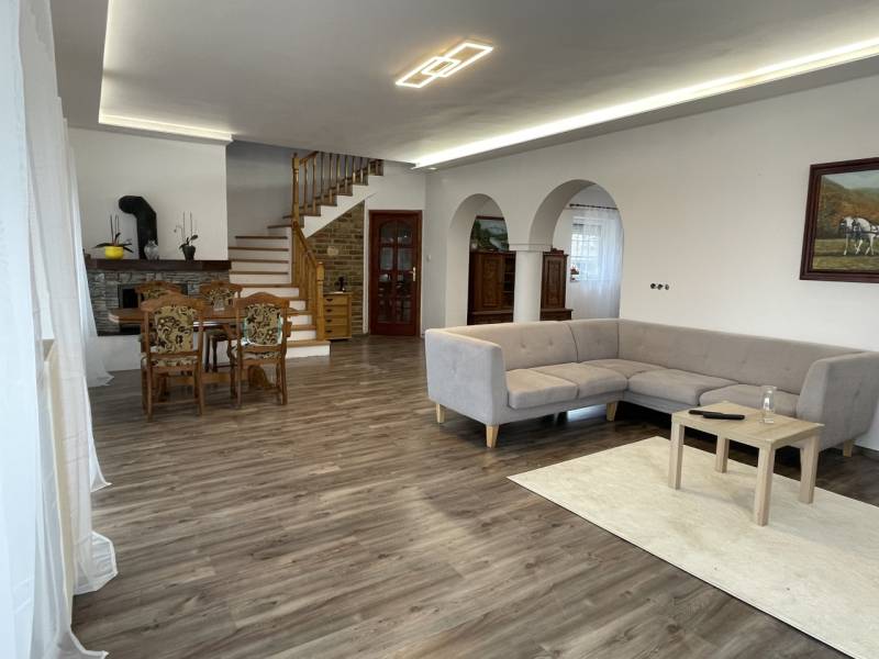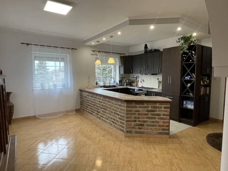 Zsombó csendes, rendezett részén kínálunk megvételre egy kiváló elosztású, téglaépítésű és hőszigetelt családi házat, amely ideális választás nagyobb családok, természetkedvelők, illetve mezőgazdasági vagy önellátó életmód iránt érdeklődők számára is.Az ingatlan redukált alapterülete 234 m², tágas belső terekkel és sokoldalúan kihasználható mellékfunkciókkal. Belső elrendezésFöldszint • Amerikai konyhás, nagy méretű nappali, amely a ház központi élettere • Előszoba • Fürdőszoba • Külön WC • Beépített garázs, közvetlen kapcsolattal a házhoz, tárolóvalA nappaliból közvetlen kijárat nyílik a 35 m²-es teraszra, amely ideális helyszíne pihenésnek, családi és baráti összejöveteleknek.Emelet – privát lakótér • 4 külön nyíló hálószoba • FürdőszobaAz emeleti kialakítás kényelmes, jól szeparált pihenőteret biztosít a család minden tagja számára. Pince – extra lehetőségekAz ingatlan alatt egy 73 m²-es pince található, amely 4 külön helyiségből áll, és kiválóan alkalmas: • tárolásra • műhely kialakítására • vagy akár második garázs létesítésére is Műszaki tartalom és felújításokFűtés és komfort: • Földszinten padlófűtés • Emeleten radiátoros fűtés • Fűtés: gázkazán • Melegvíz: villanybojlerVillamos hálózat: • Több ponton felújítva • Biztosítéktábla belső térbe áthelyezve • 16 A rendelkezésre állFelújítások és korszerűsítések: • Beépített konyhai gépek: páraelszívó, mosogatógép • WC-ben külön szagelszívó • Energiatakarékos világítótestek • Nappaliban hangulatos LED szalagos megvilágítás • Egyedi, új beépített szekrények (előszoba, hálószoba) • Új fürdőszobaszekrény • Új, multifunkciós konyhai mosogatótálcaSzerkezet: • Tégla falazat • Hőszigetelt épület • Kétrétegű műanyag nyílászárók Telek és kert – ritka adottságokA telek összesen 4 210 m², amely kivételes lehetőségeket kínál. • A ház körüli kb. 800 m²-es terület: • komposztos barnafölddel javított • öntözőrendszerrel ellátott • teljesen füvesített • Elülső és hátsó kertet sövény választja el (berkenye és babérmeggy) • A sövényekhez és a tujákhoz csepegtető rendszer került kialakításra • 2 db kb. 3 méteres kőrisfa, amelyek néhány éven belül jelentős árnyékot adnak • Kis fedett kerti építmény, kiépített árammal és külön biztosítéktáblával • 2 db kút, mindkettő elektromos csatlakozással – a locsolás költséghatékonyan megoldott Szántó és jövőbeni lehetőségekA telekhez szántó is tartozik, így az ingatlan kiváló választás: • mezőgazdasági tevékenységhez • állattartáshoz • vagy egy természetközeli, ligetes birtok kialakításáhozNézze meg ajánlatunkat személyesen is! |