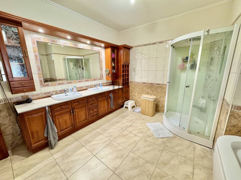 Budapest 20 km-es vonzáskörzetében egyedi és elegáns családi ház ELADÓ!Jellemzők:• Nappali + 3 szoba, 2 fürdőszoba + WC• 2008-ban épült és folyamatosan karbantartott• 38-as téglából épült, 10 cm-es szigeteléssel• Egyedi, borovi fenyő nyílászárók• Teljes méret: 240 nm (208 nm lakótér), 1368 m2 telek• Dupla garázs és nyitott beállóFelszereltség, leírás:• Beépített bútorzat (borovi fenyő)• Amerikai konyhás nappali (egyben 102 nm) és fedett terasz (27 nm)• Kényelmes méretű hálószobák (3 db), egyikhez saját fürdőszoba• Gardróbszoba, háztartási helyiség, kamra• Masszázs kád és zuhanykabinFűtés, technika:• Gázcirkó, vegyes tüzelésű kazán, kandalló; hűtés: 3 klíma• Riasztó, elektromos kapu és garázsajtó• Szélessávú internetKert:• Parkosított és kertész által gondozott• Fúrt kútról üzemelő öntöző rendszer• Kutyafuttató és távirányítható kenelajtó• Tárolók• Mozgásérzékelős zónás riasztórendszerKörnyék:• Csendes, kertvárosi hangulat• Közelben óvoda, iskola, gyógyszertár, orvosi rendelő, városi uszoda• Autóval könnyen elérhető nagy szupermarketekKözlekedés:• 20 km-re Budapesttől• Tömegközlekedéssel is könnyen megközelíthetőIdeális azoknak, akik csendes, igényes környezetet keresnek, de mégis közel a fővároshoz.Vállalkozási célra is ideális: magánorvosi rendelő, iroda, bölcsőde, szépségipar...Várom megkeresését! |