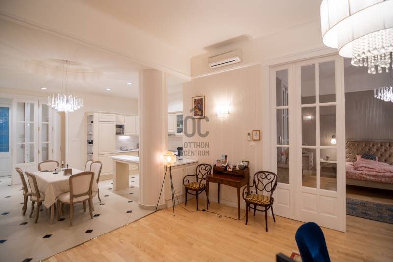 EXKLUZÍV OTTHON ÖNNEK - VÁROSNÉZÉS MINDENKI MÁSNAKTörténelmi polgári lakás Budapest V. kerületének patinás városrészében ahol az időtlen elegancia és a múlt értékei találkoznak.HOL FOG LAKNI? A Kígyó utca Budapest V. kerületének egyik legelőkelőbb belvárosi utcája, ahol a patinás épített örökség és a modern városi élet tökéletes egyensúlyban van. A környéket kifinomult városi élet, impozáns épületek és kiváló infrastruktúra jellemzi, néhány lépésre a Váci utcától és a Duna-parttól. A közelben exkluzív üzletek, kávézók, éttermek és kulturális látnivalók sora található. A kiváló tömegközlekedési kapcsolatoknak köszönhetően a város bármely pontja gyorsan és kényelmesen elérhető. Ez a lokáció ideális választás mindazok számára, akik a belvárosi eleganciát és az időtlen értékeket keresik.HOVA ÉRKEZIK HAZA?A társasház a belvárosra jellemző polgári építészeti stílust képviseli, rendezett és igényes megjelenéssel. A klasszikus homlokzat és a belső terek időtálló eleganciát sugároznak. A ház karbantartott lépcsőházzal, lifttel és közös terekkel, kulturált lakóközösséggel és nyugodt, biztonságos környezettel rendelkezik. Elhelyezkedésének köszönhetően egyszerre kínál belvárosi pezsgést és visszafogott, reprezentatív lakókörnyezetet.MILYEN LESZ A LAKÁSA?Az I. emeleti, polgári stílusú lakás tágas terekkel és kifinomult arányokkal rendelkezik, megjelenése elegáns és harmonikus. A letisztult színek kifinomult hangulatot és időtálló, nemes összhatást adnak. A szobákban klasszikus parketta, míg a lakás többi részén egységes stílusos járólap található. A délkeleti fekvésű lakásban három szoba közül kettő a Kígyó utcára, egy pedig a csendes belső udvar irányába néz. A konyha és az étkező egy nagyméretű térben kapott helyet, amely közvetlenül kapcsolódik a rendkívül tágas nappalihoz, ideális teret biztosítva a mindennapi élethez. A 20 négyzetméteres hálószobához tartozik egy közel 8 négyzetméteres gardrób is mely tolóajtókkal leválasztható a lakótértől. A második hálószoba a lakás északnyugati felében található és abban is helyet kapott egy beépített gardrób szekrény.A zuhanyfülkés fürdőszoba mellet egy plusz vendég mosdó is található, ami az előtérből érhető el.ALAPADATOK:- hasznos alapterület: 102 m2- 3 szoba- I. emelet- van lift- fürdőszoba- külön mellékhelyiség- tájolás: DK-iGÉPÉSZETA fűtést gáz cirkó biztosítja illetve a járólappal burkolt helyiségekben (konyha, étkező, fürdőszoba, mellékhelyiség, előtér) padlófűtés is van. Nyáron a hűtést két klíma egység biztosítja, amik a nappaliban illetve a nagy hálószobában kaptak helyet.Az utcafronti ablakokon elektromos redőnyökkel sötétíthető a lakás. Az ingatlant 8 évvel ezelőtt felújították mely során modernizálták a fűtésrendszert, megtörtént a fürdőszoba és a vendég mosdó komplett vízszerelése, elvégezték az ingatlan világításának teljes felújítását vezetékezéssel együtt illetve kiépítették a szükséges hálózatot a konyhában található főzőlap számára.MIÉRT EZ A LAKÁS?Tökéletes választás mindazok számára, akik Budapest szívében, történelmi környezetben, mégis a modern belvárosi élet középpontjában szeretnének élni. A kiváló elhelyezkedés, az elegáns állapot és a patinás társasház ritka és értékálló kombinációt alkot. A Duna-part és a Váci utca közelsége egyedülálló életérzést kínál a mindennapokban. Presztízs, kényelem és időtálló érték egyetlen ingatlanban.Díjmentes, bankfüggetlen hiteltanácsadással támogatjuk vevő ügyfeleinket a számukra legelőnyösebb finanszírozási döntések meghozatalában. Opcionálisan igénybe vehető kiegészítő szolgáltatásainkkal – mint ügyvédi közreműködés, energetikai tanúsítvány vagy villamos biztonsági felülvizsgálat – teljes körű szakmai támogatást nyújtunk az adásvétel folyamatának minden egyes lépésénél. |
