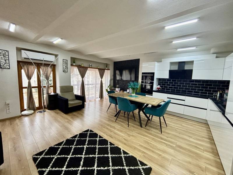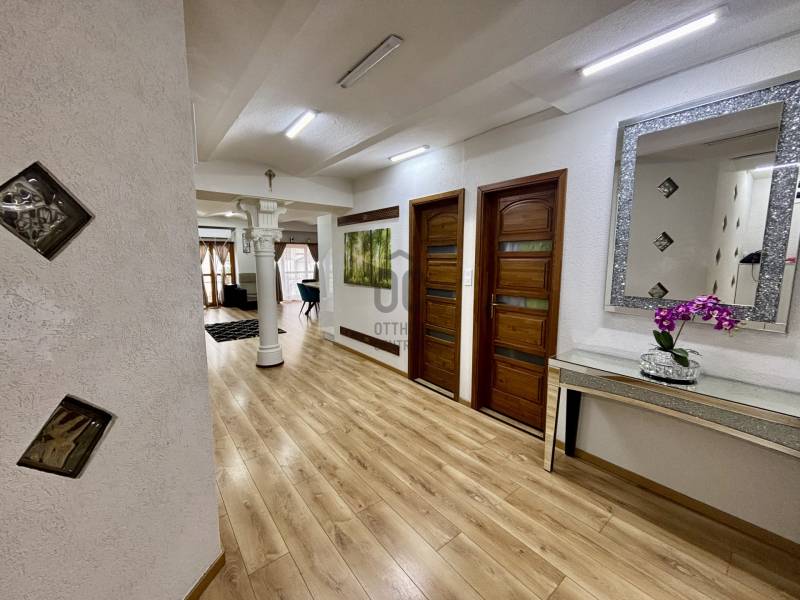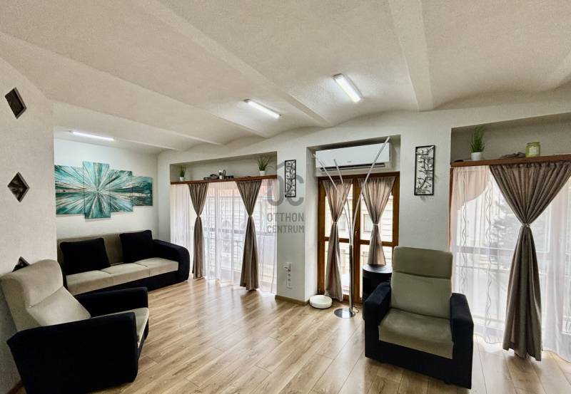 Kecskemét belvárosának frekventált, mégis csendes utcájában kínálunk megvételre egy 90 m²-es, első emeleti, teljes körűen felújított ingatlant, amely kiváló választás lehet üzleti tevékenység számára.Az ingatlan egy 8 lakásos, téglaépítésű, rendezett társasházban található, kulturált lakó- és üzleti környezetben. Elhelyezkedésének és kialakításának köszönhetően ideális ügyvédi iroda, magánrendelő (pl. nőgyógyászati rendelő), könyvelőiroda, tanácsadó cég vagy egyéb vállalkozás számára.Főbb jellemzők:-90 m² alapterület-Első emeleti elhelyezkedés-3 éve elvégzett, teljes körű felújítás-Magas minőségű burkolatok-Korszerű, hőszigetelt nyílászárók-Elektromos padlófűtés-Új, teljesen gépesített konyha (akár személyzeti helyiségként is funkcionálhat)-5,2 kW teljesítményű klímaberendezés-Autóbeállási lehetőségA belvárosi lokáció biztosítja a kiváló megközelíthetőséget, ügyfélforgalom szempontjából is jól elérhető, ugyanakkor nyugodt, diszkrét környezetet kínál.Kiváló megjelenés, modern műszaki tartalom és értékálló befektetési lehetőség egyben. |