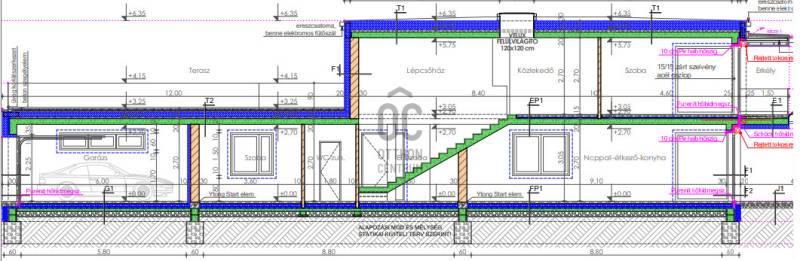 Modern ikerház eladó a Kerekestelepen!Debrecenben, a Kerekestelepen ÚJ ÉPÍTÉSŰ IKERHÁZ ELADÓ!Eladásra kínálunk Debrecen kedvelt részén, épülő, 149 m²-es, modern ikerházat 475 m²-es telekkel. A kivitelező megbízható, Debrecen környékén számos referenciával rendelkezik.Ingatlan típusa: ikerházAlapterület: telekméret 475 m2 lakóterület 149 m2Szobák száma és elrendezés:Földszint: 68,9 m2 + garázs 18 m2:előszoba (9,42 m2) konyha-étkező-nappali (43,19 m2); kamra (2,16 m2), 1 szoba (10,8 m2), WC, zuhanyzó, garázs (18 m2) található. Terasz 26 m2Emelet: (62,8 m2)1.lakás: - szoba – gardrób (23,1 m2) – fürdőszoba (6,66 m2) – közlekedő (7,4 m2)-szoba (15,15 m2) – zuhanyzós WC (4,56 m2) -lépcsőház (5,9 m2)-erkély (8,5 m2)-emeleti terasz 49 m22.lakás: - szoba (12 m2) – fürdőszoba (7,69 m2)-szoba (11,4 m2)-szoba (15,81 m2)-közlekedő (10,98 m2)-lépcsőház (5,2 m2)-erkély (8,5 m2)-emeleti terasz 49 m2Falazat: 30 cm-es N+F téglaFödém: kefni, monolit betonKülső hőszigetelés: 20 cm EPS hőszigetelésNyílászárók: 90 mm 3 rétegű hőszigetelt üvegezéssel, elektromos garázskapuEmeleti födém szigetelés: 30 cm XPS hőszigetelés PVC lemezborítássalFűtés: hőszivattyús rendszer padlófűtésselHűtés: magasoldalfal FANCOIL i (vizesrendszerű klíma)Napelem: 5 kwJárda: épület körül 80 cm szélességbenUtcai kerítés: lemezÁllapot: új építésIrányár: 150 000 000 FtÚj, energiatakarékos, prémium minőségű otthon!Az átadás dátuma a szerződést követő 3 hónap .Ügyfeleinket teljes körűen segítjük a vásárlás és eladás teljes folyamatában megbízható, díjtalan és bankfüggetlen hiteltanácsadói és kiiváló ügyvédi háttérrel.További kérdéssel, megtekintéssel kapcsolatban várom hívását a hét bármelyik napján.! |