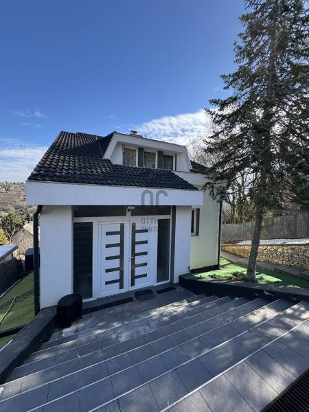 Van az a pont az ember életében, amikor már nem kompromisszumot keres, hanem minőséget.Adyliget egyik legcsendesebb, panorámás utcájában, 947 m²-es, parkosított telken áll ez a nettó közel 393 m²-es, háromszintes, szinteltolásos, luxus kivitelezésű családi ház. Olyan otthon, ahol minden térnek funkciója és hangulata van.A ház 2000-ben épült, 2021-ben teljes körűen megújult. Vastag hőszigetelés, monolit födém, prémium burkolatok, 3 rétegű nyílászárók, Velux tetőablakok, toló teraszajtók – a kint és bent határa szinte eltűnik.A nappali tágas, világos, közvetlen teraszkapcsolattal. A konyha luxus minőségű beépített bútorokkal, gépekkel, reggelizőpulttal – igazi központi tér családi és baráti estékhez. Minden szinten fürdőszoba, szeparálható lakrészek, több bejárat – akár nagycsaládnak, akár több generációnak, akár otthon + vállalkozás kombinációhoz is ideális.A kert teraszos kialakítású, örök panorámával Remetekertváros dombjaira. Jacuzzi és szauna előkészítés, napelem kiállás, gondozott zöldfelületek. Elektromos tolókapu, riasztórendszer, teljes közművesítés.A fűtésről GREE Versati II. hőszivattyú gondoskodik H tarifával, fan-coil, padló- és mennyezeti fűtéssel. Alternatív hangulat: kandalló az alsó szinten.Ez az otthon egyszerre reprezentatív és meghitt. Nagy terek, mégis jól elkülöníthető életterek. Ide nem csak beköltözni lehet – itt élni lehet.Azoknak való, akik nem egy házat keresnek, hanem egy szintet lépnének az életükben.Ha szeretné megnézni, milyen érzés, amikor a csend, a panoráma és a prémium minőség találkozik, hívjon bizalommal. |