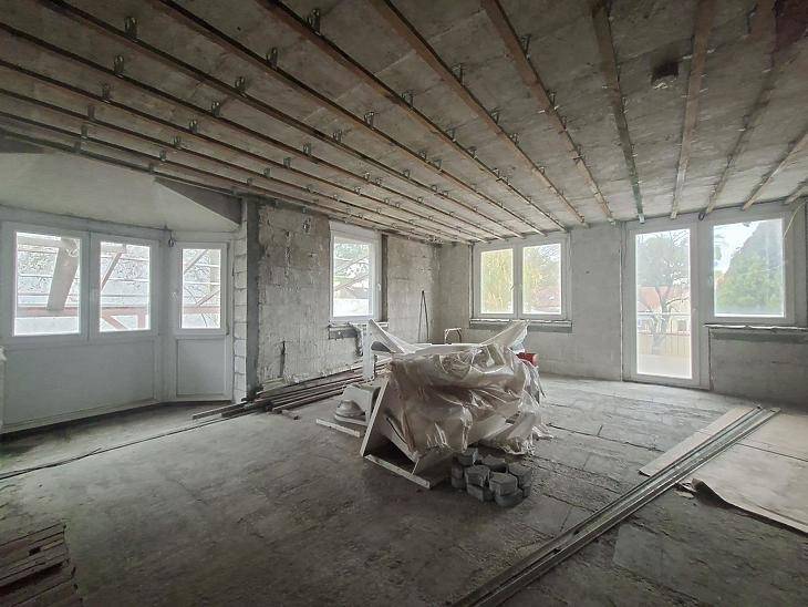 A XIX. kerületben, Kispest egyik csendes, kertvárosias utcájában eladó egy befejezetlen, prémium szerkezetű, öt szobás családi ház, amely egy 504 négyzetméteres telken helyezkedik el. Az ingatlan összesen 138 négyzetméter lakóteret kínál, amely a 55 négyzetméteres földszintből, a 60 négyzetméteres emeletből és a 24 négyzetméteres tetőtérből áll. A ház világos, tágas terekkel rendelkezik, a kertben pedig medence biztosít kikapcsolódási lehetőséget.Az épület masszív, minőségi szerkezettel készült: vasbeton alapra épült, teherhordó falai Porotherm 30-as falazóblokkból készültek, födémei pedig monolit vasbeton szerkezetűek szigeteléssel. A belső válaszfalak 10 centiméter vastagok, minden harmadik sorban fekete acélhuzallal erősítve. A lépcsők szintén vasbeton szerkezetűek. A pinceszinten az aljzat 5 centiméter Nikecell szigetelést kapott, az egész épület külső homlokzata pedig 5 centiméter Dryvit szigeteléssel készült. A tetőszerkezet szelemenekre kiváltott, tarélyszelemenes fa fedélszék.A ház gépészete a korszerű, energiatakarékos működést támogatja. A fűtést és a melegvíz-ellátást a pinceszinten elhelyezett geotermikus hőszivattyú biztosítja, a hőleadás pedig falfűtéssel megoldott. Az ingatlan jelen állapotában lehetőséget ad arra, hogy a befejezést az új tulajdonos saját igényei és ízlése szerint valósítsa meg. Az elhelyezkedés, a modern gépészet, a medence és a kiváló szerkezeti kialakítás miatt a ház kivételes lehetőség azok számára, akik minőségi alapokra építenének otthont Kispest egyik legnyugodtabb részén.Vevőink számára a közvetítés díjtalan!Eladó ingatlanát díjmentesen felbecsüljük. |