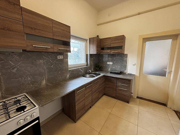 IV. kerületben, Újpest-kertvárosában, 329nm-es telken fekvő, 66nm-es 2szobás családi ház eladó, 15,5nm-es verandával.A telek osztatlan közös, használati megosztással, az ingatlan pedig peresített helyrajzi számmal és Alapító Okirattal rendelkezik, így elővásárlási joga van a szomszédnak. Hitelezhető, tehermentes!A ház 1960.-ban épült téglából, 2022.-ben pedig teljeskörűen felújították. Az épületet külsőleg leszigetelték (10cm), új tetőcserepeket és ereszt kapott. A villany-vezetékeket áthúzták rézre, a nyílászárók műanyag thermo üvegesek, a szobák laminált parkettások, a többi helyiség járólapos. A konyhabútort kicserélték, a fürdőszobát újra csempézték. A fűtésről két gázkonvektor és két cserépkályha gondoskodik.A veranda felújítása és a kert rendezése az új tulajdonosra vár.Kertben található több régi fészer/tároló.A telek használati megosztását tekintve, a szomszéddal még egy közös 92nm-es kert rész is tartozik a házhoz, ahol két autó beállási lehetősége adott. Igény szerint, akár a mellette levő telek is megvásárolható, amin jelenleg egy befejezetlen téglából épülő ház van, így egyben 685nm-es építési telket kap, melynek összesen az irányára: 125.900.000.-FtA közlekedés kiváló, néhány perc sétára található a 20E, 220, 96, 296 buszok megállója melyekkel Újpest központ, Keleti pályaudvar és Újpalota is rövid időn belül elérhető! A hirdetésben szereplő adatok tájékoztató jellegűek! |