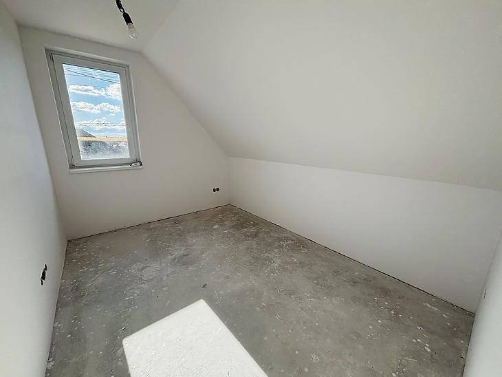 RégiFót rendezett, családias részén kínálunk megvételre egy 2026-ban épült, modern ikerházfelet, amely ideális választás mindazok számára, akik új otthont keresnek jó infrastruktúrával és kiváló megközelíthetőséggel.A nettó 94,5 nm-es lakótér praktikus elrendezésű: a földszinten amerikai konyhás nappali, egy szoba, fürdőszoba és előszoba található, míg a teljesen beépített tetőtérben közlekedő, három külön nyíló szoba és egy fürdőszoba került kialakításra. A déli fekvésnek köszönhetően a terek egész nap világosak.A nappaliból közvetlen kapcsolat nyílik a 6,5 nm-es teraszra és a leválasztott, saját használatú 20 nm-es kertrészre.Az ingatlan korszerű műszaki tartalommal rendelkezik:12 cm külső szigetelés, 30 cm födémszigetelés, 3 fázis, H tarifa, hőszivattyús hűtő-fűtő klíma és mindkét szinten padlófűtés biztosítja az energiatakarékos működést.A társasházzá minősített ingatlan külön helyrajzi számon szerepel, saját mérőórákkal rendelkezik, 1/1 tulajdonban van, a ház előtt pedig két saját kocsibeálló található.Elhelyezkedése kifejezetten kedvező: buszmegálló, üzletek és a mindennapi élethez szükséges szolgáltatások a közelben, Budapest pedig gyorsan megközelíthető autóval.Az ingatlan kizárólag készpénzes vevő részére elérhető. |