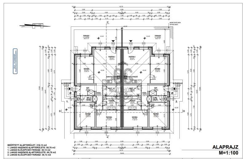 Bocskaikert csendes, nyugodt részén, 524 m²-es telken modern kialakítású, új építésű ikerház épül, amely ideális választás mindazok számára, akik korszerű és energiatakarékos otthont keresnek.Az ingatlan egy 85,78 m²-es, új építésű, 3 szobás + amerikai konyhás-nappalis ikerház, amely átgondolt térkialakítással és kimagasló műszaki tartalommal valósul meg.Szerkezet és szigetelés:- 30 cm-es Porotherm/Leier tégla falazat- 15 cm homlokzati EPS hőszigetelés- 10 cm XPS lábazati szigetelés- 30 cm födémszigetelés- 3 rétegű üvegezésű, 6 légkamrás műanyag nyílászárók- A korszerű gépészet és a modern technológia hosszú távon alacsony fenntartási költséget biztosít.Fűtés és gépészet:- korszerű padlófűtés, vagy gáz hiányában modern hőszivattyús rendszer- a vételár része 2 db inverteres klíma- energiahatékony, alacsony rezsijű működés- közművek telken belüli csatlakoztatása (amennyiben adott)- városi víz hiányában házi vízmű- csatorna hiányában 3 m³-es zárt szennyvíztartály (igény szerint nagyobb kapacitással, felár ellenében)Az építkezés kezdete: 2026.Ez az ingatlan kiváló választás mindazoknak, akik megbízható kivitelezésű, jól szigetelt, energiatakarékos új otthont szeretnének nyugodt környezetben, Bocskaikert kedvelt részén.Érdeklődjön most, és foglalja le időben új otthonát! |