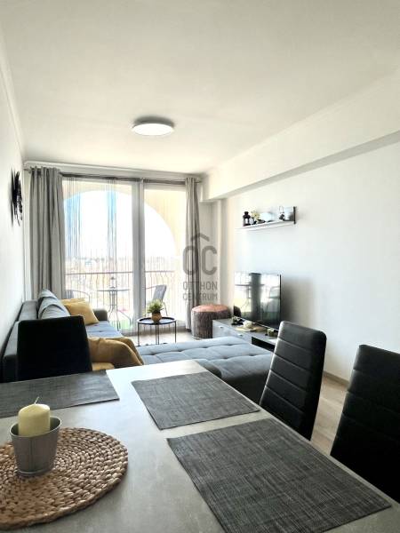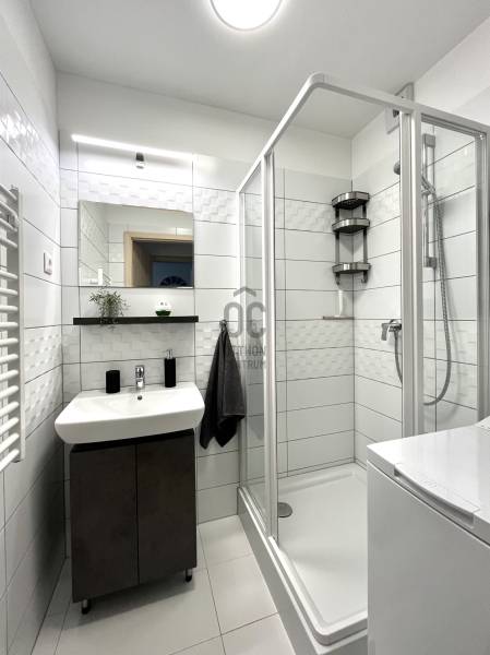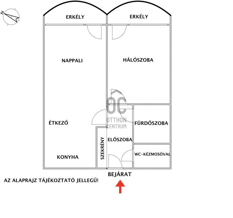 Amerikai konyhás nappali étkezővel, külön nyíló, kényelmes méretű hálószoba, fürdőszoba, külön WC kézmosóval, előszoba, 2-erkély.A lakás világos, letisztult stílusban berendezett, minőségi bútorokkal és teljesen gépesített konyhával.