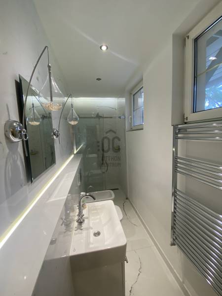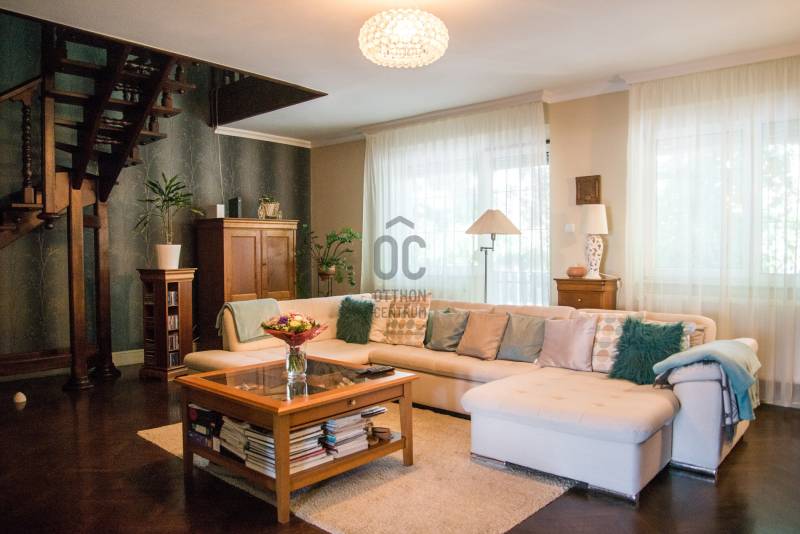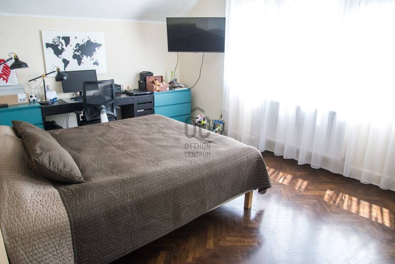 Debrecenben, a klasszikus Nagyerdőn, a Nagyerdei körútból nyíló csendes kis utcában, 276 nm-es (+ 42 nm-es dupla garázs) alapterületű, nappali + nagy konyha-étkezős + 4 nagy hálós + 2 fürdő + wc-s + a szuterén szinten külön fürdő és wc-s, a nyolcvanas években, 470 nm-es telken épült kétszintes (+a szuterén szint) gáz-cirkó fűtéses önálló családi ház eladó.A ház 2020-ban teljeskörű belső felújításon esett át (villany és gáz vezetékek cseréje, kondenzációs kazán,burkolatok,stb) kivéve a konyhai burkolat és a konyhaszekrény melyek régebbiek.A ház tégla falazatán 10 cm szigetelés van, a tetőn Bramac cserép,műanyag nyílászárók redőnnyel részben rovarhálóval ellátva, van szobánként klíma, van riasztó és elektromos kapu, a szuterén szinten szauna hozzá tartozó zuhanyzóval és téglával kirakott borospince található valamint 42 nm-es 2 állásos garázs, a parkosított kertben szalonnasütő és kiépített öntözőrendszer, kerti csap. |
