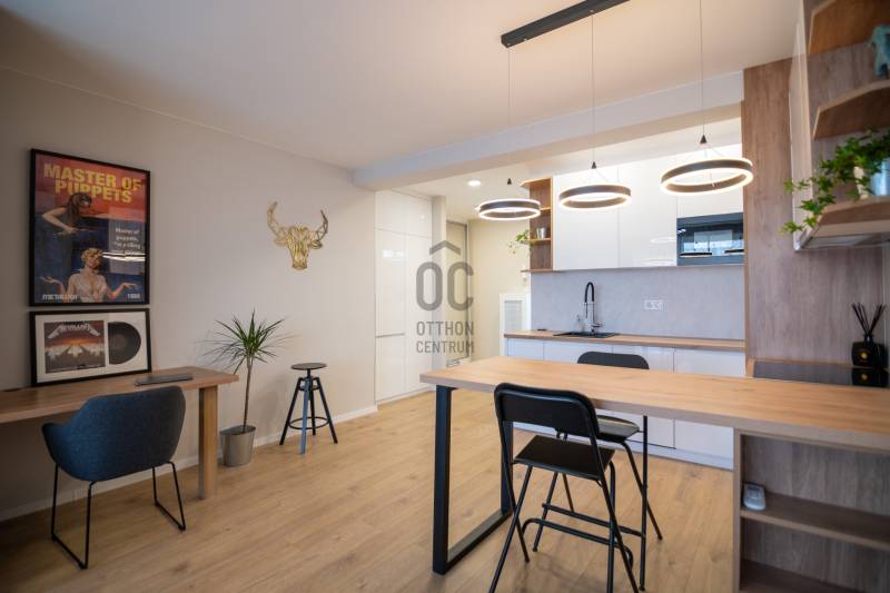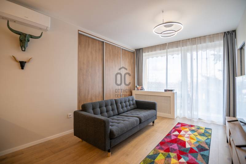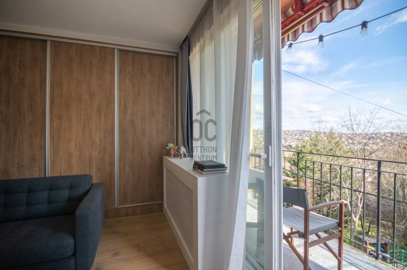 Eladó egy frissen felújított, erkélyes, két szobás lakás Budapest XII. kerületének csendes, zöldövezeti részén, Kútvölgyben.A 45 m²-es, kiváló állapotú ingatlan azonnal költözhető, így az új tulajdonosnak már nem kell felújítással foglalkoznia. A lakás modern, amerikai konyhás kialakítású, amely világos és jól használható életteret biztosít a mindennapokhoz. A vételár tartalmazza a beépített bútorokat és a gépesített konyhát is, így az otthon gyakorlatilag kulcsrakész állapotban várja új lakóját.Az ingatlanhoz egy 6 m²-es erkély tartozik, ahonnan elképesztő kilátás nyílik a környező zöld területekre és Budapest látképére, így ideális helyszínt biztosít a pihenéshez vagy akár egy reggeli kávé elfogyasztásához. A lakáshoz saját tároló is tartozik, a parkolás pedig megoldható az udvarban vagy ingyenesen az utcán a ház előtt.A környék csendes, biztonságos és kifejezetten zöldövezeti jellegű, így ideális választás mindazok számára, akik nyugodt környezetben szeretnének élni, mégis közel a városhoz. A közelben több zöld terület is található, amelyek kiváló lehetőséget biztosítanak kikapcsolódásra és szabadidős tevékenységekre.A közlekedés szintén kedvező, a közeli buszjáratoknak köszönhetően a város többi része is könnyen és gyorsan elérhető, így a mindennapi ingázás sem jelent problémát.Ne hagyja ki ezt a lehetőséget – keressen bizalommal még ma, és tekintse meg személyesen! |