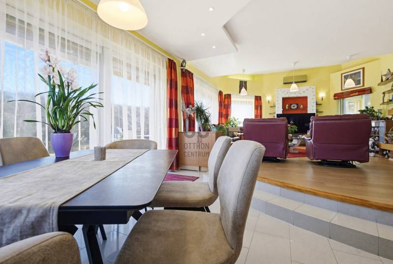 Megvételre kínálok egy csodálatos, panorámás, 2002-ban épült családi házat , csendes utcában, Szombathely mellett SÉ-ben .TELEK: -1100m2 - panorámás - saroktelek- parkosított- örökzöldek körben - rendezett-gondozott- öntözőberendezés kiépítve - körbe kerített- díszburkolat a garázs és a ház közöttCSALÁDIHÁZ:-2002-ben épült egyedi elképzelés alapján, belső építész segítségével- igényes, élhető, tágas terek jellemzik az egész házat - DK-i fekvésű- családi ház három szinten 380nm - amerikai konyhás nappali + 5 szobából áll ( ebből az egyik jelenleg irodának van használva ) - 2 fürdőszoba- külön vendég WC- gardróbszoba- háztartási helyiség- tágas előszoba- beépített padlás- 2db autóbeálló a garázsban, a garázs előtt még egy autónak beállási lehetőség biztosított- elektromos kapu- parkosított udvar- részben fedett terasz (45m2, térkövezett)- jó minőségű konyhabútor (beépített gépekkel)- padlófűtés + radiátoros fűtés- nappaliban kandalló- a házban több fűtési lehetőség: elektromos kazánnal és gáz cirkóval megoldott- hűtő- fűtő klíma a nappaliban- emeleten 2 db hűtő klíma lett beszerelve - megújuló energia: napelem 10KWp- tetőtéri ablakok Velux márkájúak- nyílászárók műanyagok, teraszajtó tolóajtós- nappaliban a teraszon elektromos redőny,- szobákban reluxa- tégla építésű - 10 cm homlokzat szigetelés- terasz alatt tároló lett kialakítva a kerti szerszámoknak, a kertben lévő nyári bútoroknak - USZODA szaunával - medence mélysége 140-150cm, víz forgatóval, ellenáramoltatóval, víz melegítéssel - medencén takarófólia - medence tér világos, körbe ablakokkal, szalagfüggönnyel.- Az ablakok kialakítása szellőztetővel megoldott- kertkapcsolatos SÉ településen óvoda Iskola Szombathelyen és Torony településenKERÉKPÁR ÚT Szombathelyig kiépítve, természetközeli, zöld környezetben KB 10 PERC TÁVOLSÁGBANSport létesítmények, fedett teniszpálya, uszoda, csónakázó tó 8-10 perces távolságban.Ausztriai kishatár ( Bucsu) kb. 8 km-re |
