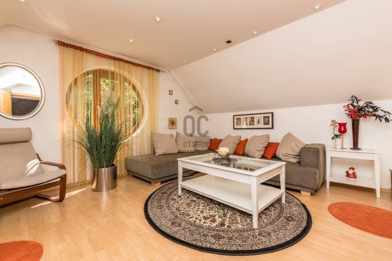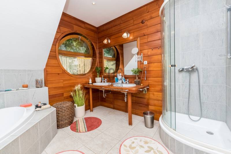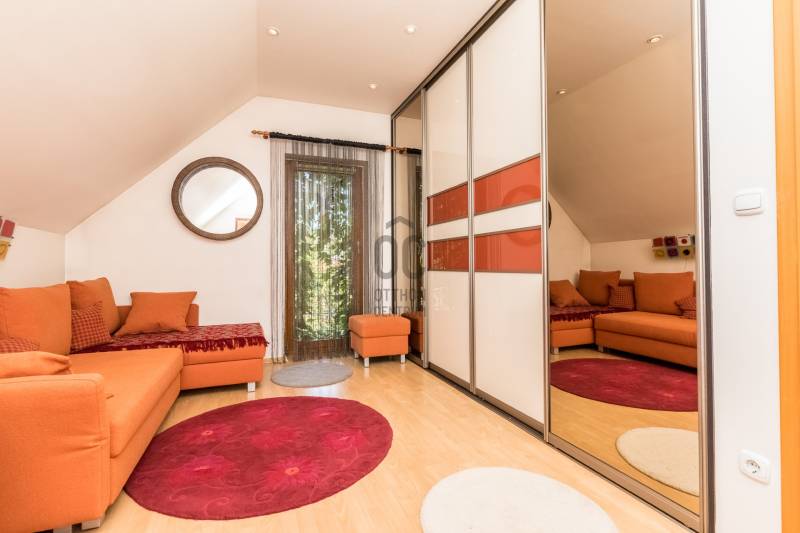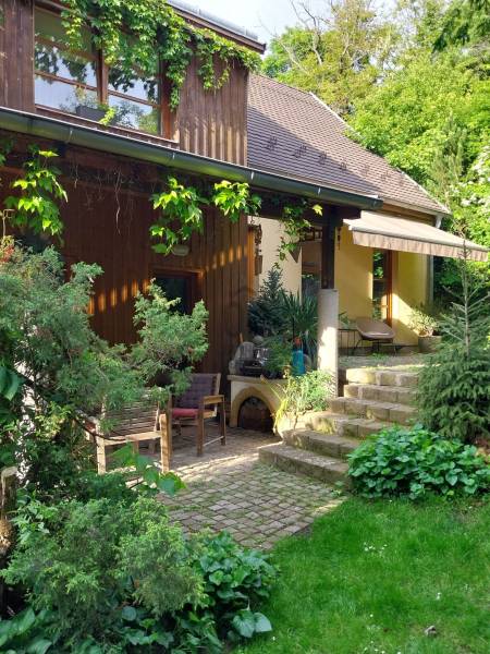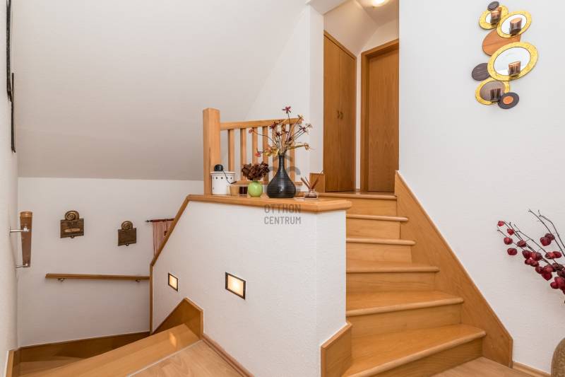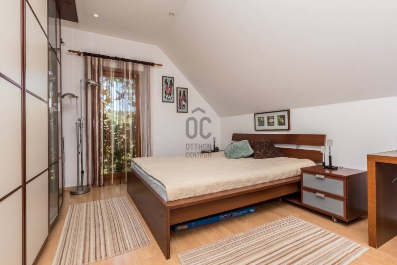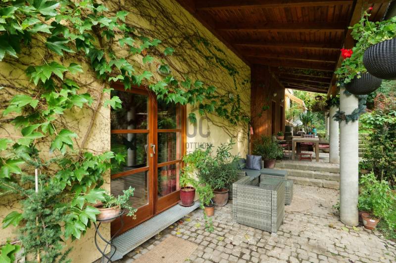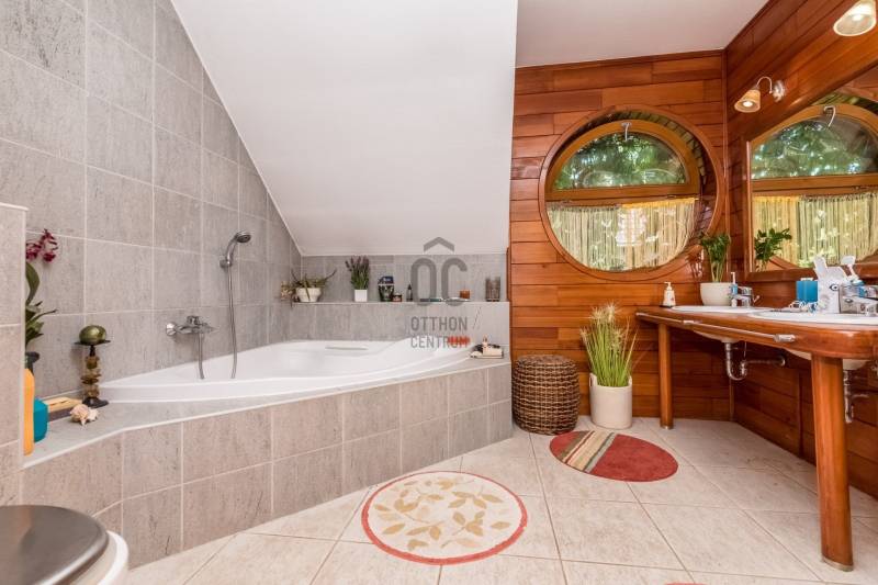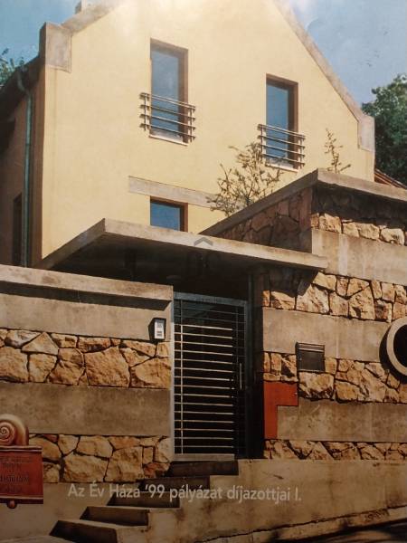Csobánka történelmi települése a smaragd az északi agglomeráció koronáján. A pilis lábánál elterülő falusias bájú községet háborítatlan zöld öleli, sziklás és erdős hegylánctól körülvett gyönyörű völgykatlanban fekszik mindössze 15km-re Budapesttől!Tökéletes választás azok számára, akik a Fővároshoz kötve élnek, de nem kötnek abban kompromisszumot, hogy az Otthonuk a nyugalom szigete legyen!Itt, a Villa-negyedben került eladósorba egy UNIKÁLIS CSALÁDI HÁZ.Abszolút egyedi tervek, falakból megvalósított álmok születtek itt 1999-ben, melyet mi sem bizonyít jobban, hogy ekkor az épület megkapta az \"ÉV HÁZA\" díjat, valamint a Magyar Építészeti Kamara különdíjazottja lett.Domboldalba rejtett álomotthon ami tökéletes kompozíciója a romantikus Provence otthonnak és a kényelmes életterek alkotta funkciónak.A közel 1000m2-es hegyoldali telket tökéletesen kihasználva mind az építész mind a tájépítész egyedit alkotott. Az utcafronti terméskövezett támfalba rejtve 60m2-es 3állásos garázs valamint biciklitároló került. A ház 2 szintes elrendezésű, 203nettó alapterületén 2 külön, és egyben is használható lakótér valósult meg:Földszinten: elegáns előszoba/hall, mosókonyha-gépészeti helyiség, szeparált illemhely, hatalmas amerikai konyhás nappali kamrával, valamint térben szeparált dolgozószoba kaptak helyet. A nappali szinteltolással különül el, éke a frissen készült mázoskerámia cserépkályha és a hatalmas ablakokon át nyíló zavartalan zöldkerti panoráma. Erről a szintről elérhető a KÜLÖN LAKRÉSZ, -melynek külső bejárata is van, nappali+konyha+fürdőszoba elrendezésű így tökéletes választás nagyszülő elhelyezésére, fiatal felnőtt gyermek számára valamint ÜGYFÉLFOGADÁSRA, IRODAI TEVÉKENYSÉGRE, BEAUTY SZOLGÁLTATÁSOKRA, -így a vállalkozás együtt mégis szeparálva koordinálható otthonról!Emeleten: Fürdőszoba, 4 hálószoba, mind világos, kellemes méretű, az egyik walk-in gardróbbal felszerelt, 2-nek franciaerkélye van, a szülői lakrész pedig egy folyosó végén kialakított tágas hálószoba, saját fürdőszobával.Az elegáns terek jó műszaki felszereltséggel találkoznak, a házban PADLÓFŰTÉS van, KONDENZÁCIÓS KAZÁN biztosítja a hőszabályozást, a nyílászárók tömörfa-tokos thermoüveges egységek.Kiépített riasztórendszer, elektromos garázskapu, kerti tároló, víztisztító berendezés!A fenntartási költség ALACSONY, az épület hőtartása téli és nyári időszakban is tökéletes!A kert gyönyörű, buja díszcserjékkel, homlokzatra futó vadszőlővel kápráztatja el az ideérkezőt. Beállt, egészséges felnőtt növényzete nem csak dekorál, de árnyékot ad és levegőt szűr, így hatalmas érték annak, aki tudja mit ad a zöld az ember szívének!A növényzet gondozását automata öntözőrendszer segíti, a kerti szerszámoknak külön tároló áll rendelkezésre.Jöjjön el, tekintse meg, ha szereti a természetet és kívánja hogy a hétköznapjait körbeölelje a zöld, ha olyan otthont keres ahol a vállalkozása is elfér a család megzavarása nélkül, ha nagycsaládos és elege van a kompromisszumokból, - olyan otthonra vágyik ahol mindenkinek egészséges tér jut!Vigyázat! - ABSZOLÚT BELESZERETŐS, Ha megnézi nem keres majd tovább!-alaprajz feltöltése folyamatban, de mailben szívesen elküldöm!- |