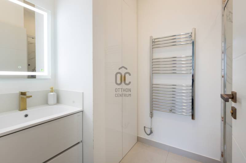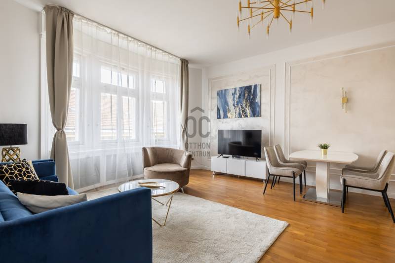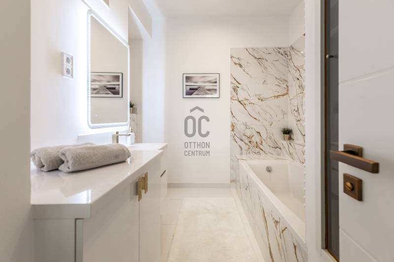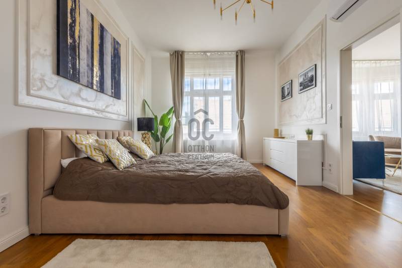 Eladó a Budapest egyik legkeresettebb részén, a Dél-belvárosi Veres Pálné utcában ez a különleges hangulatú, 100 négyzetméteres, jó terekkel rendelkező, utcai nézetű, dupla komfortos lakás. Társasházról:Szecessziós jegyeket viselő, elegáns társasház a Veres Pálné utca egyik legpatinásabb épülete, mely 1927-ben épült Himmler Miksa építész által. Külső és belső homlokzata egyaránt teljes felújításon esett át, a függőfolyosók is kiváló állapotúak. A belső udvar zöld oázisként működik, ahol a növények és a gondozott terek nyugodt, barátságos atmoszférát teremtenek.A Kovácsoltvas erkélyei virágai és a homlokzat díszítése különleges karaktert adnak, amely az utcát is meghatározza. Kulturált, összetartó lakóközössége és különleges megjelenése miatt ez a ház igazi ritkaság a belvárosban.A lakás főbb jellemzői:- jól karbantartott, kívül-belül szép, liftes ház 4. emeletén,- tágas és világos nappali-konyha kandallóval, előszoba gardróbszekrénnyel,- 2 hálószoba, 2 fürdőszoba, mindkettő ensuite, vendég wc kézmosóval,- teljes felújítás: egyedi design festés, fa nyílászárók elektromos redőnyökkel, valódi fa parketta,- minőségi, gépesített konyha Bosch konyhagépekkel,- kondenzációs cirkó, minden szobában klíma, a szomszédok felé a falak hangszigeteltek,- csak a bőröndjét hozza, az ár tartalmazza az összes bútort, dekorációt, felszerelési tárgyat,- kiválóan kiadható, akár hosszú, akár rövid távraLokáció – ahol az élet pezseg, de élhető maradA Veres Pálné utca a belváros egyik legbájosabb és legértékesebb utcája, közvetlenül a Károlyi-kert és a Váci utca közelében, csupán néhány perc sétára a Duna-parttól, a Kálvin tértől, a Ferenciek terétől és az Egyetem tértől. A Vásárcsarnok is sétára található, mely az egyik legjobb a városban, minden nap friss termelői áru várja az ide érkezőket.A környék különösen kedvelt a kulturális élet iránt érdeklődők körében: számos galéria, kortárs kiállítótér, design bolt, irodalmi kávézó és művészmozi található a közelben. Az ELTE, a Corvinus és más egyetemek közelsége miatt befektetésnek is ideális választás.Közlekedés:Pár perces sétára található az M3-as és M4-es metró, több villamos (47-es, 49-es) és busz is elérhető, így a város bármely pontja gyorsan megközelíthető.Ez az ingatlan azoknak szól, akik nem akarnak kompromisszumot kötni: belvárosi elhelyezkedés, modern kényelem, tágas terek – mindez egy kulturálisan pezsgő, mégis élhető városi környezetben.Akár saját otthonnak, akár befektetésnek kiváló választás.Ne maradjon le erről az egyedi lehetőségről – kérjen időpontot a megtekintésre még ma! |