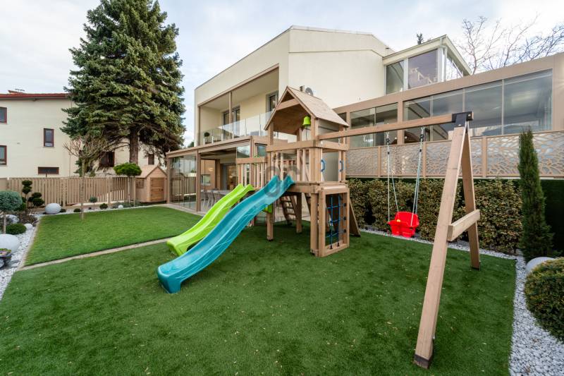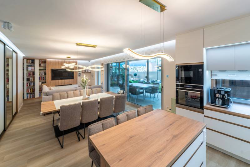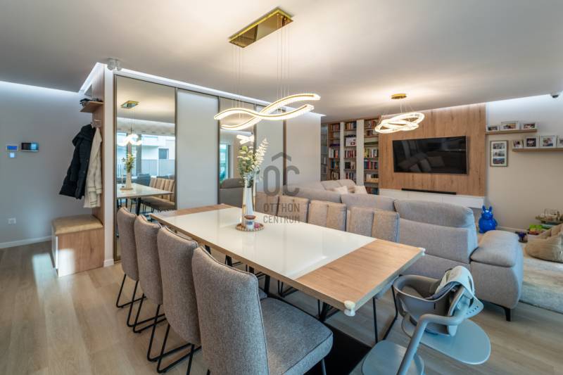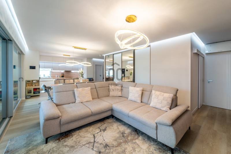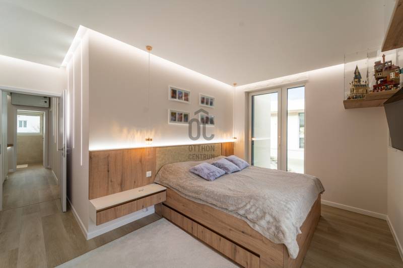 A III. kerület egyik legkedveltebb, legnaposabb részén, Testvérhegy erdősávos utcájában kínálunk megvételre egy újszerű, prémium kategóriás ingatlant, amely minden részletében a luxus és a kompromisszummentes minőség megtestesítője.Páratlan elhelyezkedésAz ingatlan Testvérhegy legnaposabb utcájában helyezkedik el, csodálatos zöld környezetben, mégis kiváló közlekedéssel:Autóval az Árpád híd mindössze 10 percA British International School Budapest és az Alternatív Közgazdasági Gimnázium 8 percen belül elérhetőMinden fontos szolgáltatás néhány percen belül megtalálhatóAz otthon, amely túlmutat az átlagonA kétszintes ingatlan ideális elosztású:3 hálószobaTágas, amerikai konyhás nappali-étkező, amely tökéletes helyszíne baráti és családi összejöveteleknek2 fürdőszoba1 külön wc-kézmosóHáztartási helyiségGardróbA gondosan megtervezett belső terekben a legújabb prémium burkolatok, egyedi megoldások és egy többkörös designfolyamat során összeállított, mestermunka minőségű bútorzat kapott helyet. A kortárs belsőépítészet egyik kiemelkedő példája – nemcsak látványában, hanem funkcionalitásában is kifogástalan.Már az előtérből a nappaliba lépve érezhető: ez nem egy átlagos ingatlan.Panoráma és exkluzív kültéri élményA kertkapcsolatos, tágas teraszokról fantasztikus városi panoráma tárul elénk.A teraszokon akklimatikus pergolák és elhúzható üvegfalak biztosítják az egész éves kényelmet, a 9 személyes Wellis jacuzzi pedig a luxus életérzés elengedhetetlen része.Modern műszaki tartalomOkosotthon rendszerHőszivattyús fűtési rendszerMennyezeti hűtés-fűtésGarázs + egy felszíni beállóPÉLDÁTLAN MINŐSÉG – KOMPROMISSZUMOK NÉLKÜLAz egyedi tervezésű bútorokat és a gépesítést a vételár tartalmazzaEz az ingatlan azoknak szól, akik már nem szeretnének többet költözni, és a tökéletes, kompromisszummentes otthont keresik hosszú távra.Minden részletében a luxus élményét nyújtja – a prémium kategória esszenciája.Jöjjön el, nézze meg személyesen – garantáltan nem fog csalódni! |