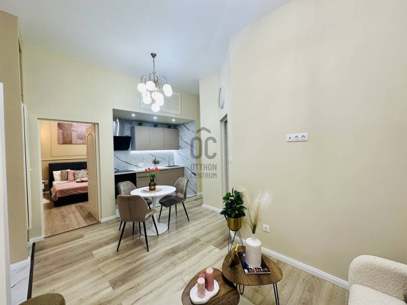 Ritka lehetőség Budapest szívében – felújított polgári lakás a Klauzál térenEladó Budapest VII. kerületében, Belső-Erzsébetváros egyik legkedveltebb részén, a Klauzál téren egy 40 m²-es (tulajdoni lapon 36 m²), teljes körűen és igényesen felújított, dél-nyugati tájolású, világos polgári lakás.Az ingatlan egy kulturált, szépen karbantartott társasház első emeletén található, önálló helyrajzi számmal rendelkezik, azonnal birtokba vehető.A lakás amerikai konyhás nappalival, külön hálószobával és fürdőszobával rendelkezik. Az elrendezés praktikus, élhető tereket biztosít. A felújítás során minden burkolat cserélve lett, a víz- és villanyvezetékek megújultak, az aljzat födémig visszabontásra került és új betonréteget kapott. A modern, fiatalos esztétikai kialakítás időtálló, mégis karakteres hangulatot teremt.A lakás egész délelőtt természetes fényben fürdik a dél-nyugati tájolásnak köszönhetően. A fűtésről hűtő-fűtő klíma és energiatakarékos elektromos fűtőpanel gondoskodik. A közös költség 16.200 Ft, amely korlátlan vízfogyasztást tartalmaz.A konyha modern, minőségi gépekkel felszerelt – ide valóban csak költözni kell.A társasház rendezett, megtakarítással rendelkezik, a tető nemrég felújításra került. Az udvar növényesítése önkormányzati pályázat keretében valósult meg, ami tovább emeli az épület színvonalát.Elhelyezkedése kiemelkedő: a Klauzál tér éttermei, kávézói közvetlen közelben találhatók, miközben a lakás nyugodt környezetet biztosít. A Blaha Lujza tér és az Erzsébet körút pár perc sétára elérhető, így a város bármely pontja gyorsan megközelíthető.Ideális választás első lakásnak, fiatal párnak vagy értékálló befektetésnek. Frekventált elhelyezkedése miatt könnyen és gyorsan kiadható.Az ingatlan önálló helyrajzi számmal rendelkezik, azonnal birtokba vehető.Igény esetén videót is tudok küldeni.Egyedi igényekre szabott lakáshitelekkel állunk rendelkezésére.Bankfüggetlen Hitelcentrumunk az országban elérhető összes bank és hitelintézet ajánlatát versenyezteti az Ön számára díjmentesen.Munkatársaink nagy szakmai tapasztalattal, teljes körű CSOK PLUSZ és OTTHON START PROGRAM ügyintézéssel várják Önt előre egyeztetett időpontban akár a normál munkaidő után is. |