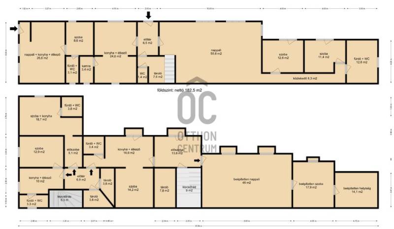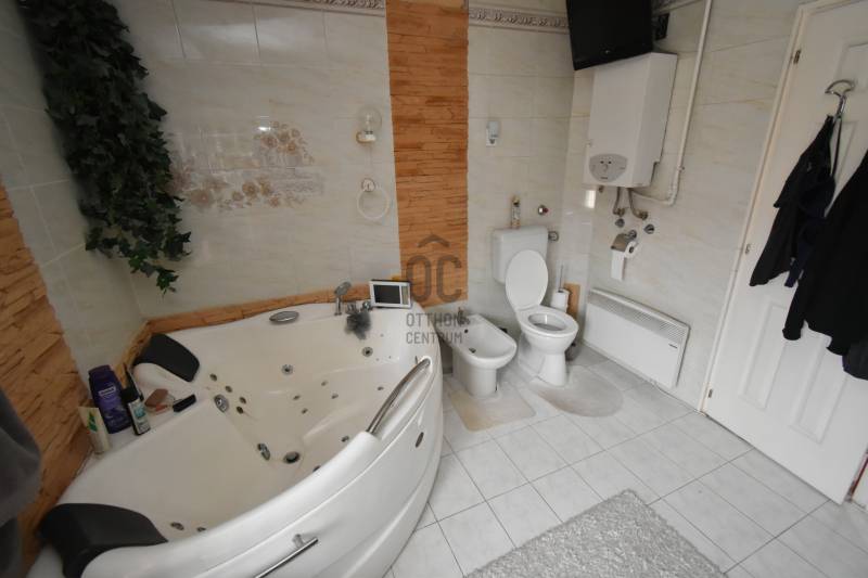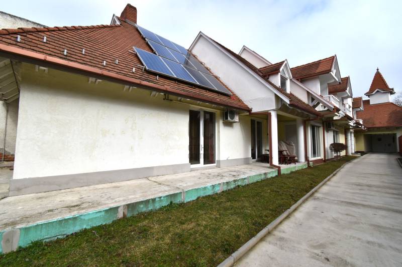 5 külön bejáratú lakás egy családi házban.Ez a kiváló állapotú, átépített, teljes körűen felújított családi ház, tökéletes választás lehet mindazok számára, akik kényelmes és tágas otthonra vágynak, vagy akár befektetési céllal keresnek ingatlant.A ház egy 1115 m2-es telken helyezkedik el, nettó 403 m2-es alapterülettel rendelkezik, amely nyolc szobát és öt fürdőszobát foglal magában, így ideális lehet nagyobb családok számára, vagy akár üzleti célra, vendégház üzemeltetésére, kiadásra.Mind az öt külön bejáratú lakrész önállóan is funkcionál.Kondenzációs gáz cirkó kazán biztosítja a fűtést, amelyből tartalék készülék is fel lett szerelve, a meleg víz ellátást pedig 3 db villany bojler végzi.Az energiatakarékos üzemeltetést 5 kW-os napelem rendszer biztosítja, amely 10 kW-os fejlesztés alatt van, hibrid üzemmódban.Az emeleten radiátoros, míg a földszinten padlófűtés és radiátoros hőleadás van.Az összes nyílászáró műanyag szerkezetű.A ház egészében klíma berendezések gondoskodnak a megfelelő hőmérsékletről.A földszinti, utca fronton kialakított lakás 38 m2-es, egy nappali + konyha + étkező, szoba és fürdőszoba + WC helyiségekből áll.Ezen a szinten egy további nagy méretű lakás található, amely 144 m2-es, tágas nappalival, 2 szobával, fürdőszobával, 2 db WC-vel, konyha + étkezővel, kamrával, tárolóval.Az utcafronti lépcsőházból megközelíthető emeleten 3 db önálló bejáratú lakrész került megépítésre, 26, 27,6 és 34,2 m2-es nettó méretekkel.Mindegyikben szoba, konyha + étkező, fürdő + WC helyiségek lettek kialakítva.A ház déli oldalán kis méretű erkélyekre lehet kijutni. A földszinten pedig egy szintén déli tájolású terasz biztosítja a lakók komfortját.Az udvarban 4 db garázs épült, de a parkolás a ház előtt is megoldható.A felső 3 db lakás bútorozottan, az alsó szint üresen kerül átadásra a leendő tulajdonosnak.Az utcafronti tető tisztítását és a homlokzat festését a tulajdonos elvégzi.A környék rendkívül kedvező adottságokkal bír: a belváros közelsége miatt minden fontosabb szolgáltatás, mint például boltok, éttermek és iskolák könnyedén elérhető.A tömegközlekedési lehetőségek is kiválóak.Az autós közlekedés szempontjából is ideális, hiszen a főbb közlekedési útvonalak, valamint a gyorsforgalmi utak könnyen megközelíthetők.A környék biztonságos és csendes, amely lehetőséget biztosít a nyugodt mindennapok eltöltésére, miközben a város pezsgése is karnyújtásnyira van.Ez az ingatlan nemcsak egy otthon, hanem egy lehetőség is, hogy egy értékes ingatlan birtokosa legyen, amely hosszú távon megtérülő befektetést is jelenthet.Bármilyen kérdés esetén szívesen állok rendelkezésére, hogy segítsek Önnek megtalálni álmai otthonát vagy befektetését.Az ingatlan piaca folyamatosan változik, ezért érdemes mihamarabb lépni, hogy ne maradjon le erről a páratlan lehetőségről.Kérem, ne habozzon kapcsolatba lépni velem, hogy további részleteket oszthassak meg Önnel, és lehetőséget biztosíthassak az ingatlan megtekintésére.Irodánk teljes körű szolgáltatást nyújt kereső ügyfeleinek.Szakszerű tanácsadással, ingyenes CSOK és hitelügyintézéssel, energetikai tanúsítvány elkészítésével és kedvező díjszabású ügyvéddel nyújtunk segítséget! |