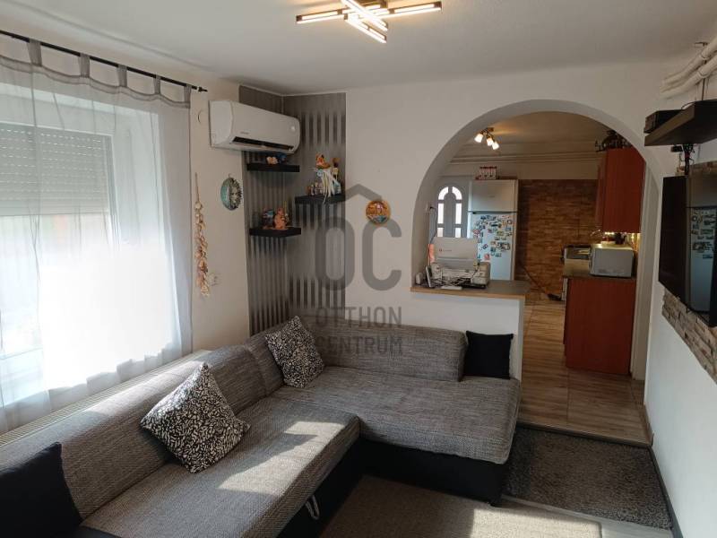 Albertirsa jó környékén, a vasútállomáshoz és a központhoz közel, iskola és pékség szomszédságában kínálunk megvételre egy 62,49 +17.75 m²-es családi házat 500 m²-es telken.Helyiségek: 2 szoba, nappali, konyha, gardrób, előszoba, fürdőszoba, külön WC, valamint külön bejárattal egy szoba saját WC-vel + tároló.Műszaki tartalom:Vegyes falazat (tégla és vályog), beton alapTetőcsere megtörtént3 éve villanyvezeték-csere3 éve 5,5 kW-os napelem rendszerMűanyag nyílászárók2 db 3,5 kW inverteres hűtő- fűtő klímaGáz cirkó és vegyestüzelésű kazán radiátoros hőleadássalÖsszközműves (víz, gáz, csatorna, áram)Extrák: elektromos kapu, 2 db kamera, fedett kocsibeálló, fúrt kút, nagy terasz, kis kerti tó, sütögető, játszórész, valamit a bútorzat igény szerint tartalmazza a vételárat. Csendes, jó szomszédság, kiváló elhelyezkedés. Készpénzes vevők jelentkezését várjuk. |