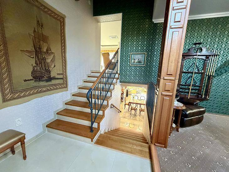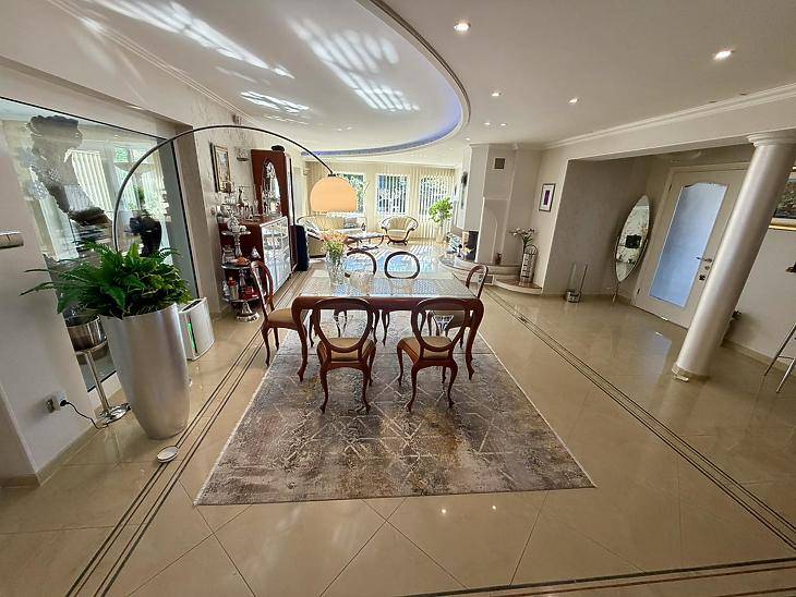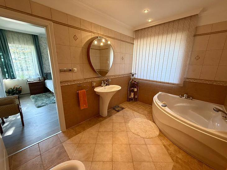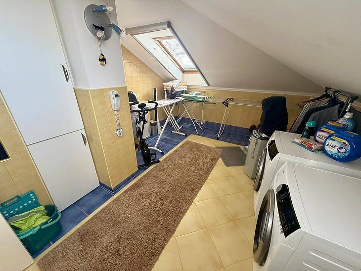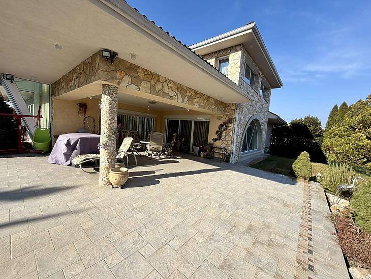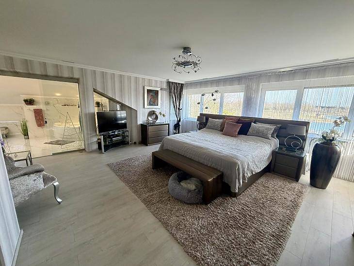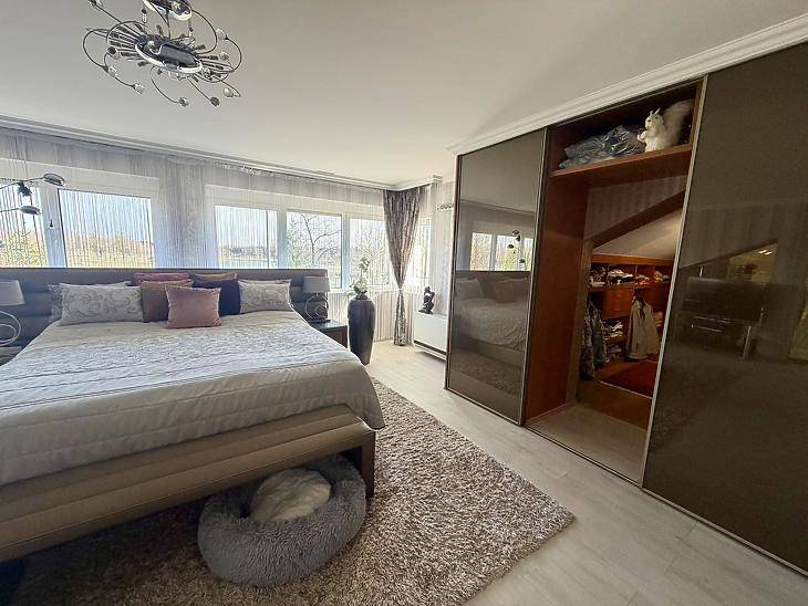 Vác Déli lakóparkban kínálunk megvételre egy különleges adottságokkal rendelkező családi házat.A 2004-ben épült ingatlan egy 2000 nm-es telken helyezkedik el, ahol a természet közelsége és a nyugodt környezet harmonikusan találkozik a modern lakóparki infrastruktúrával. A több szinten kialakított ház három teljes szinttel és két félemelettel rendelkezik, amelyek lépcsőn és liften keresztül egyaránt kényelmesen megközelíthetők. A felső szintekről gyönyörű, panorámás kilátás nyílik a közvetlenül a ház mellett elhelyezkedő tóra, ami igazán különleges hangulatot ad az otthonnak.Az alsó szinten kapott helyet a gépészeti tér és egy nagyméretű garázs, felette pedig egy további garázs és tároló biztosít bőséges helyet járműveknek és eszközöknek. A földszinten egy tágas, amerikai konyhás nappali fogad. Innen nyílik a vendégszoba saját fürdőszobával, valamint egy különleges hangulatú wellness részleg, ahol fedett medence, jacuzzi és szauna gondoskodik a mindennapi feltöltődésről. A nappalit egy tágas terasz és egy hangulatos télikert egészíti ki, amelyek tökéletes helyszínt biztosítanak a pihenéshez vagy a baráti összejövetelekhez.A következő félemeleten egy billiárd szoba kapott helyet, míg az emeleten egy világos nappali, dolgozószoba és két kényelmes hálószoba található, amelyek közül az egyik saját fürdőszobával rendelkezik. A szinten egy további fürdőszoba, mosókonyha, valamint egy praktikus gardrób is helyet kapott.Az ingatlan korszerű gépészeti megoldásai közé tartozik a geotermikus fűtési és hűtési rendszer, valamint az emeleten elhelyezett hűtő-fűtő klíma. A ház okosotthon rendszerrel is felszerelt, amely lehetővé teszi több funkció – például a fűtés, hűtés vagy világítás – kényelmes és modern vezérlését. A kényelmet és az egészséges lakókörnyezetet olyan további megoldások erősítik, mint a központi porszívó vagy a levegőtisztító rendszer.A házat egy kertész által gondozott, gyönyörűen parkosított kert veszi körül, amely automata locsolórendszerrel felszerelt, így a zöld környezet egész évben rendezett és gondozott marad.Ez a különleges családi ház ideális választás azok számára, akik tágas, elegáns otthont keresnek nyugodt környezetben, miközben nem szeretnének lemondani a modern technológia és a prémium komfort nyújtotta előnyökről.Amennyiben hitelre lenne szüksége profi hitelközvetítői kollégáink díjmentesen állnak rendelkezésükre. Kérdésével illetve megtekintési szándékával keresse irodánkat. |