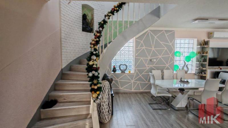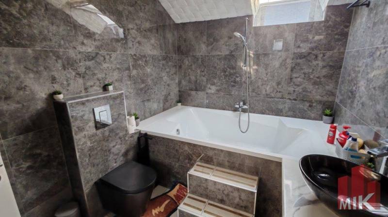 Eladó prémium családi ház Tahitótfaluban – Dunakanyar, 340 nm, 1710 nm telek, wellness & vállalkozási lehetőségA festői Tahitótfalu településen, a Dunakanyar egyik legszebb részén kínálunk megvételre egy kivételes adottságokkal rendelkező, belterületi családi házat.Az ingatlan egy 1710 nm-es, parkosított telken helyezkedik el, összesen 340 nm lakóterülettel, két szinten. A téglaépítésű ház 7 cm szigeteléssel ellátott, összközműves, műszakilag karbantartott és 2021-ben jelentős felújításon esett át (elektromos hálózat csere, burkolatok, festés, szaniterek, modern új konyha kialakítása).Főbb jellemzők:5 tágas szobaKonyha + étkező3 fürdőszobaWellness részleg: jakuzzi, szaunaKülön mosókonyhaGázcirkó fűtés padlófűtésselFatüzelésű kandalló a nappalibanHűtő-fűtő klímaberendezésekA nagy terek és a két szint kényelmes, elegáns életteret biztosítanak akár nagycsaládosok számára is.Kültéri extrák:Hangulatos terasz kerti szökőkúttalA kert hátsó részében dísztóKülön grill teraszDupla garázs szerelőaknávalElektromos kapuAutomata öntözőrendszerNagyméretű telek, különálló épülettel – vállalkozásra is ideálisA környék infrastruktúrája kiváló: a közelben élelmiszerbolt, buszmegálló és óvoda is megtalálható.Ez az ingatlan tökéletes választás azok számára, akik békés, természetközeli környezetben képzelik el otthonukat, ugyanakkor fontos számukra a jó megközelíthetőség és az értékálló lokáció.Amennyiben egy elegáns, komfortos és sokoldalúan hasznosítható otthont keres a Dunakanyar szívében, várom megtisztelő hívását.MIK azonosító: 3991759 |