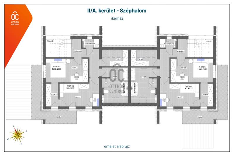 Budapest egyik legkedveltebb, elegáns kertvárosi részén, Széphalmon kínálunk megvételre egy nettó 140,5 m²-es, háromszintes, 4 szobás prémium ikerházfelet, 550 m²-es, intim kerttel.Ez az otthon nem csupán egy ingatlan, hanem egy exkluzív életérzés!Csend, zöld környezet, biztonságos, családias, kertvárosi rész, mindez a budai oldal presztízsértékű övezetében!Az ingatlan kétlakásos társasházként kerül bejegyzésre, jelenleg mindkét ikerházfél elérhető.Várható átadás: 2026 júniusAz otthon atmoszférája:A háromszintes kialakítás tökéletesen szeparálja a közösségi és a privát tereket.A nappali-konyha-étkező tér világos, nagy üvegfelületekkel kapcsolódik a kerthez, így a természet szinte a belső tér részévé válik.A felső szinteken kialakított hálószobák nyugodt, intim életteret biztosítanak.Az első szinten helyet kapott egy dolgozószoba, valamint egy háztartási helyiség.Az 550 m²-es kert ideális exkluzív terasz, lounge tér, gyermekbarát kert vagy akár reprezentatív kültéri fogadások kialakítására is.Lokáció – ahol a város és a természet találkozik:* Buszmegálló néhány lépésre* A Széll Kálmán tér autóval kb. 15 perc* Gyors kapcsolat Hűvösvölgy és a budai belváros irányábaA közelben megtalálható:* nívós állami és magánóvodák, iskolák* bevásárlási lehetőségek (Budagyöngye, Hűvösvölgy, 5 perc sétatávon belül: hentes, zöldséges, pékség, kávézó, Tesco)* egészségügyi szolgáltatások* sport- és szabadidős lehetőségekPár perc alatt elérhetőek a Budai-hegység kirándulóútvonalai, erdei ösvényei, ideális környezet aktív, természetközeli élethez is.PRÉMIUM MŰSZAKI TARTALOMNyílászárók:* REHAU 8.1 – 6 légkamrás, 3 rétegű üvegezés* ALUPROF alumínium rendszerek (függönyfal, tolóajtók)Biztonság* Alumínium bejárati ajtó MABISZ minősítéssel* Többpontos biztonsági zár* Előkészített riasztó rendszer* 2 db külső kameraGépészet – fenntartható luxus* DAIKIN hőszivattyús rendszer melegvíz tárolóval* Teljes padlófűtés* Szobánként programozható digitális termosztát* 5 rétegű csőrendszer, professzionális szereléstechnika* H tarifa (3x32 A + 1x20 A)Tetőn napelem rendszer fogadására alkalmas védőcsövezés kerül kialakításra, a Napelem telepítése külön árajánlat szerint kerül kiépítésre.Elektromos autó töltési kiállás a garázsban.Árnyékolás & komfort* Aluprof SZF/BX1 zsaluzia – forgatható lamellák* Konyhai elszívás* Szobánként TV + internet csatlakozásIgény esetén prémium okosotthon rendszer kiépíthető (hőszivattyú, árnyékolás, kamera, világítás, garázskapu vezérlés).Parkosított kert (tervezés alatt)* Füvesített kert automata öntözőrendszerrel* Bokrok, fák telepítése* Acél szerkezetű pergola fa lamellákkalAz ingatlan egyedi, letisztult, modern építészeti megjelenése és a gondosan megtervezett kert együtt egy harmonikus, elegáns életteret hoz létre.Kinek ajánlom?Azoknak, akik kompromisszummentes minőséget keresnek, értékelik a budai presztízslokációt, és hosszú távra terveznek egy időtálló, energiahatékony otthonnal.A részletes műszaki tartalomért, megtekintési időpontokért vegye fel velem a kapcsolatot elérhetőségeim egyikén.Hívását a hét bármely napján örömmel fogadom! |