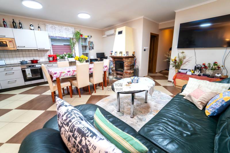 Debrecen kedvelt kertvárosi részén, Olajfa lakóparkban nettó: 86nm-es, bruttó: 107 nm-es, 2014 -ben épült IKER ház eladó!Ez a gyönyörű ikerház minden igényt kielégít, legyen szó kényelmes életről vagy gazdaságos fenntarthatóságról!Ingatlan jellemzői:- amerikai konyha+nappali, 2 különnyíló szoba (eredeti terv szerint 3 szobás)- fürdőszoba, wc, gardrób, kamra- beltéri tömör fa ajtók- klíma, vízteres kandalló- magasfényű, gépesített konyhabútor- gáz cirkó kazánról padlófűtés a ház minden helyiségében- műanyag nyílászárók szúnyoghálóval, gránitpárkánnyal, hőszigetelt aluminium redőnnyel- külső szigetelés- fedett terasz 15 nm- fedett kocsibeálló 1 jármű részére- fémszerkezetes tároló praktikus kialakítással- automata öntözőrendszer- riasztó- tehermentesOlyan családi házat keres amely korszerű, kifogástalan állapotú, és csak birtokba kell vennie?Ritkaság ilyet találni, nézze meg ezt, míg van rá lehetősége!Amennyiben további kérdése van az ingatlannal kapcsolatban várom telefonos megkeresését.Az ingatlanról teljes körű videó felvétel készült, a megtekintése érdekében weboldalunkon keresse a H514046 regisztrációs számon vagy keressen telefonon közvetlenül. |