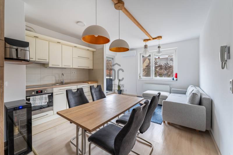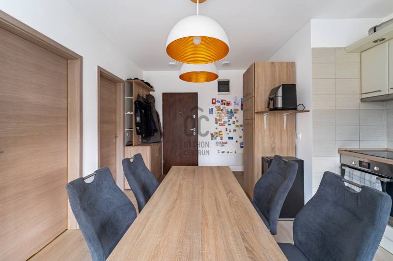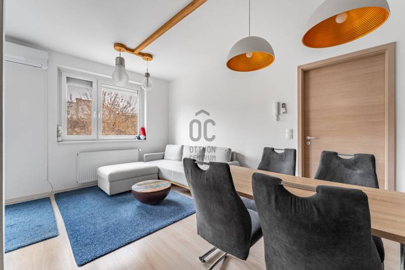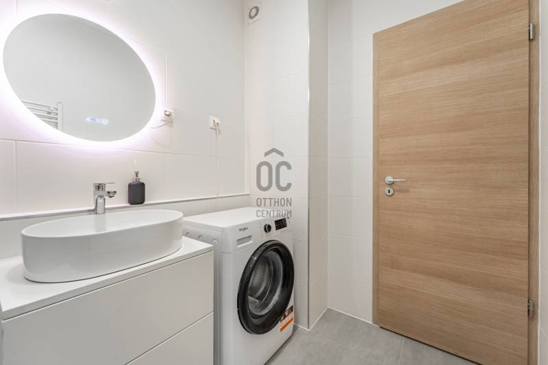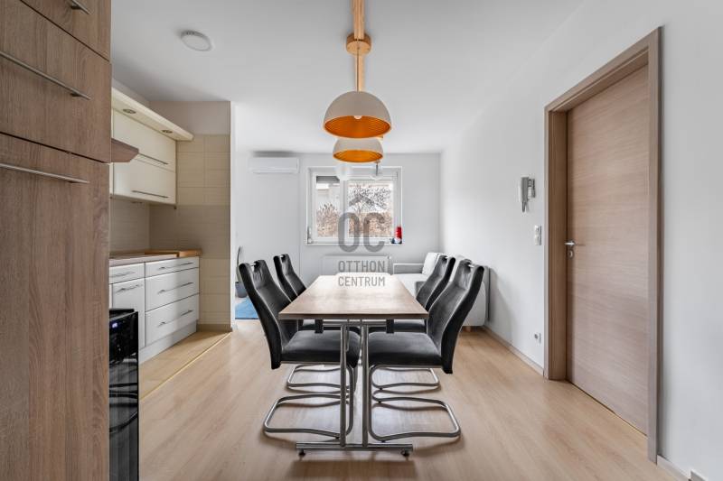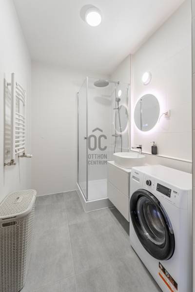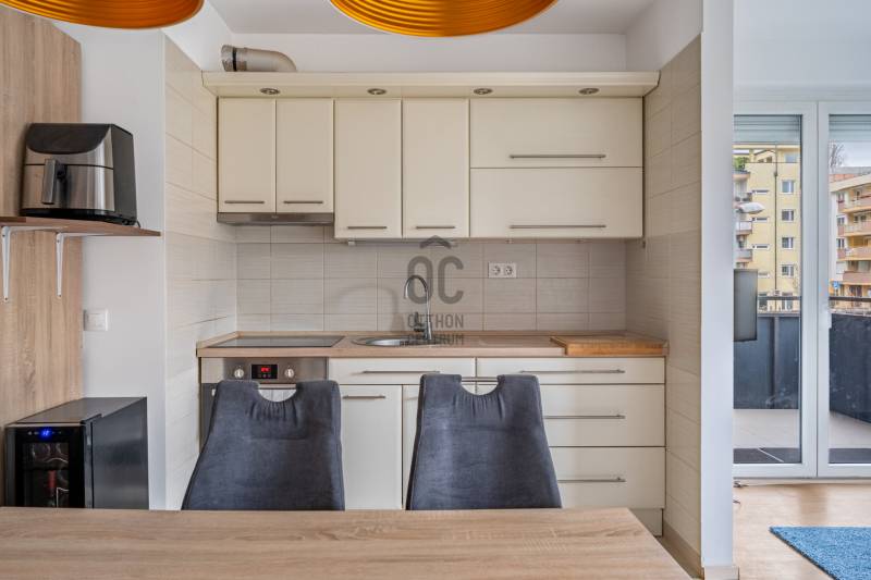 Eladó egy keleti fekvésű, amerikai konyhás nappali + hálószobás, erkélyes lakás, amely a XIII. kerületben egy 2016-ban épült, 76 lakásos társasház 1. emeletén található.A nagyméretű teraszajtó és az ablakok kellemes mennyiségű napfényt biztosítanak a 24 m2-es amerikai konyhás nappali számára.A lakást modern műszaki tartalom és prémium felszereltség jellemzi: duplazáras bejárati ajtó, minőségi burkolatok és szaniterek, beépített bútorok, gépesített konyha, WiFi-s klíma. Házközponti fűtés, egyedi hőmennyiségmérővel.Az előtér, a fürdőszoba és a különnyíló WC 2026 januárjában teljeskörű felújításon esett át.Ugyan a lakás egy csendes utcában található, viszont a remek lokációnak köszönhetően mégis minden nagyon közel van: villamosmegálló, éttermek, boltok, szolgáltatók, stb. A lakás teljesen felszerelt és kiváló állapotban van, ide már csak beköltözni kell.Opcionálisan megvásárolható egy 3 m²-es zárt tároló a –1. szinten. |