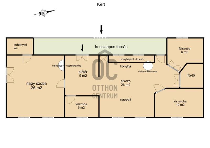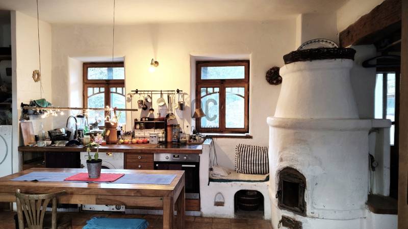 Vágyik egy helyre, ahol a reggeli kávé mellé templomtoronyra néző panoráma és erdőszéli csend jár? Orfű belterületén, egy hatalmas, közel 6000 m²-es dupla telken várja új gazdáját ez a különleges, autentikus parasztház.Hatalmas tér, végtelen lehetőség: A két helyrajzi számon fekvő, összesen 5956 m²-es terület valójában 2-3 építési portányi helyet kínál – ideális családi rezidenciának, vendégháznak vagy befektetésnek. Csodás panorámát nyújt Orfű községre, a templomtoronyra, illetve a környező hegyoldalakra. A telek egyik vége erdővel határos.A szép, tornácos ház helyi védettség alatt áll, nettó alapterülete 97 m2, amely áll előtérből, nagy konyha-étkező-nappali helyiségből (26 m2), nagyszobából, amely külön bejáratú is lehet, saját fürdő+wc-vel, kuckós kemencével, 2 félszobából, és egy kisebb szobából, valamint még egy fürdő+wc helyiségből. A fürdők két éve lettek átalakítva. A házhoz tartozik egy kívülről megközelíthető 15 m2-es pince, illetve egy melléképület, fészer, amelynek a megerősítése szükséges.A ház modernizálása 2008-ban történt, pl. a víz-, és villanyvezetékek cseréje, bekerültek a látszó fagerendák, kialakították a vízelvezetést a ház körül. Akkor készült el a két búbos kemence, amelyek közül a nappaliban lévő vízteres kialakítású, erről működik keringetős rendszerrel a radiátoros központi fűtés. A másik a nagyszobában van, az előtér felől fűthető, a szecessziós cserépkályhán keresztül. (Tipp: Ez a nagyszoba leválasztható a lakótér többi részétől, külön apartmanként funkcionálhat önálló utcai bejárattal.) A ház egyedi gyártású külső-belső nyílászárókat kapott, a hidegburkolat padlástégla, a fapadló pedig egyedi, asztalos által készített, de felújításra szorul. A födém-, és tetőszerkezet még eredeti állapotában van.Több, mint egy ingatlan: Életérzés.Ez a porta nem csak falakból áll – erős kisugárzása, békéje azonnal magával ragadja az embert. Itt az erdő a szomszéd, a kilátás pedig minden nap más arcát mutatja.Az ingatlan per- és tehermentes, azonnal birtokba vehető.Jöjjön el, érezzen rá a hangulatára, és legyen Ön is büszke orfűi lakos!Kérem, tekintse meg a tájékoztató jellegű alaprajzot!Tájékoztatásért hívjon nyugodtan! |