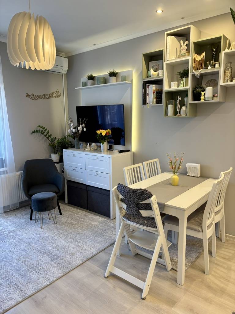 CSAK NÁLUNK – FELÚJÍTOTT, ERKÉLYES ÉKSZERDOBOZ LAKÁS GARÁZZSAL* ÉS TÁROLÓVAL* BUDAFOKONBudafok kedvelt részén kínálunk megvételre egy felújított, erkélyes, barátságos hangulatú lakást, amely ideális választás lehet első otthonnak, fiatal pároknak vagy akár befektetésnek is.A lakás egy rendezett, téglaépítésű társasház első emeletén található. A ház kétszintes, ebben az épületrészben mindössze 10 lakás található, így nyugodt, családias lakókörnyezet jellemzi.A LAKÁS ELRENDEZÉSEA lakásba belépve egy előszobába érkezünk. Innen nyílik a lakás központi tere, a világos amerikai konyhás nappali, amely a lakás igazi közösségi tere.A nappaliból egy erkélyre léphetünk ki, amely zöld, kertre néző kilátást biztosít.A lakás további helyiségei:világos gyerekszoba (félszoba) nagy ablakokkalkülön WC az előszobából nyílvaa nappaliból nyíló kis közlekedő, amelyből nyílikegy hálószoba, ahol egy félig elszeparált home office sarok is kialakításra kerültvalamint egy kádas fürdőszobaAz elrendezés praktikus és jól használható, a lakás terei világosak és otthonosak.MŰSZAKI ÁLLAPOTAz ingatlan felújított, újszerű állapotú, azonnal költözhető. 2 klímával is felszerelt.Felújítások:2015 – műszaki felújítás2020 – esztétikai felújítás2021 – új speciális biztonsági bejárati ajtó lett beszerelveTovábbi jellemzők:műanyag nyílászárókMika gázkazános fűtéskarbantartott, szép állapotú lakásTÁRSASHÁZA társasház rendezett és folyamatosan karbantartott, a lépcsőház néhány éve felújításra került.A közös költség kb. 26 000 Ft, amely korlátlan vízfogyasztást is tartalmaz, valamint fedezi a ház karbantartását és a felújítási alapot.A KERT ÉS KÖRNYEZETA lakás egyik nagy előnye a tágas, zöld belső kert, amelyet a lakók közösen használhatnak.A kertben található:gyerekjátszótérsütögetőhelyteregetési lehetőségvalamint sok nagy, árnyékot adó faEz a zöld terület nyugodt, barátságos környezetet biztosít a lakók számára.Az udvarban találhatóak a garázsok is.*GARÁZS ÉS TÁROLÓAz ingatlanhoz tartozik:egy fedett, zárható garázs (25 m2) az udvarban, amely KÖTELEZŐEN megvásárolandó 6 millió Ft-értaz épület alagsorában egy nagy belmagasságú tároló (~ 6m2), amely KÖTELEZŐEN megvásárolandó 4 millió Ft-értKÖZLEKEDÉSNéhány perc alatt elérhető a Budafok-Háros vasútmegálló, ahonnan a vonatokkal gyorsan megközelíthető Kelenföld és a Déli pályaudvar.A közelben található a 133E gyorsbusz, amely közvetlen kapcsolatot biztosít többek között Keleti pályaudvar irányába.A környéken további buszjáratok is elérhetők.BEVÁSÁRLÁSA közelben Aldi, Tesco is megtalálható, valamint több kisebb üzlet és szolgáltatás, illetve a CAMPONA.INTÉZMÉNYEKA környéken óvoda, bölcsőde és iskola is elérhető, így családosok számára is kényelmes választás.Ez a lakás ideális választás lehet azok számára, akik egy felújított, barátságos hangulatú otthont keresnek zöld környezetben, ugyanakkor fontos számukra a jó közlekedés és infrastruktúra.Első lakásnak, fiatal pároknak vagy befektetésnek is kiváló lehetőség.Az ingatlan kizárólag irodánk kínálatában elérhető.A hirdetés tájékoztató jellegű.További információért és megtekintéssel kapcsolatban várom megkeresését. |