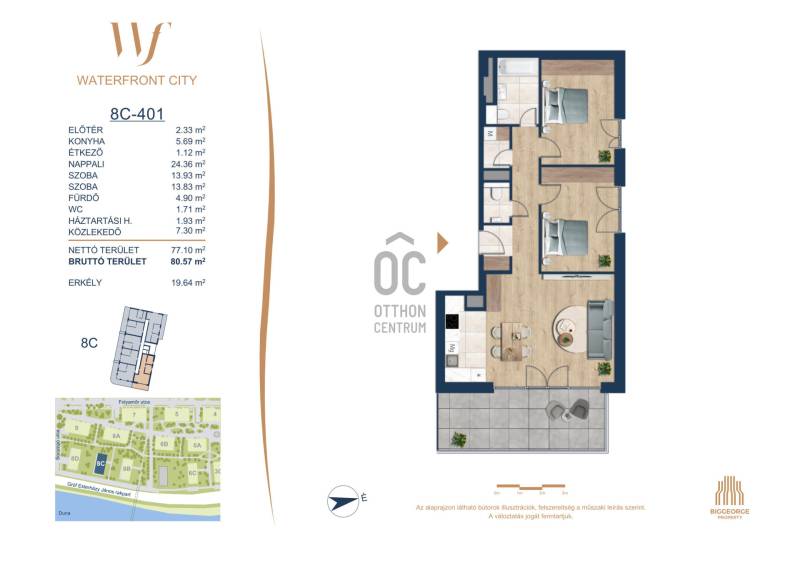 Projekt bemutatásaA projektrőlA Waterfront City egy új, modern városnegyed a 3. kerületben, ahol a természet közelsége és a városi kényelem tökéletes egyensúlyban van. A Duna-part közvetlen szomszédságában elhelyezkedő fejlesztés különleges atmoszférát kínál: a sétányt új épületek határolják, üzletekkel, kávézókkal és szolgáltatásokkal, amelyek élhető közösségi teret teremtenek.A 13 emeletes lakóépületből lenyűgöző örökpanoráma nyílik a budai hegyekre és a folyóra, a tágas teraszok pedig ideálisak a pihenéshez vagy a baráti összejövetelekhez. A zöldtetők, parkosított terek és fenntartható megoldások – mint az energiatakarékos rendszerek és okos otthon funkciók – mind hozzájárulnak a modern, környezettudatos életstílushoz.Látogass el értékesítési irodánkba, és tekintsd meg a városnegyed makettjét személyesen! Ismerd meg, milyen lesz az élet Budapest egyik legizgalmasabb új fejlesztésében!Óbuda szívébenKépzeld el, ahogy egy napsütéses délelőttön Óbuda szívében sétálsz, a Duna közelsége frissítően hat rád, miközben a Folyamőr utca, a Miklós tér és a Bogdáni út által határolt, öt hektáros területre érsz. A levegőben ott van a város történelme, mégis minden részletében a jövő hívogat.A 50 000 négyzetméteres területen egy hangulatos sétány vezet végig, amely egyenesen az óbudai Fő térre visz – mindössze 600 méterre. Ez a sétány nem csupán összeköt, hanem élményt nyújt: a Kolosy térről induló Óbudai Promenád részeként a város egyik legélhetőbb, legpezsgőbb szakaszán haladsz végig. És ha biciklivel érkeznél? A nemzetközi kerékpárút is itt halad el, Szentendre felé vezetve.Az 5. ütemben épülő 149 lakás mindegyike egyedi hangulatot kínál. Ahogy belépsz egy-egy otthonba, a hatalmas üvegfelületeken át beáradó fény és a tágas, szellős terek azonnal magukkal ragadnak. A kilátás? A Kaszap István park zöldje nyújt békét, míg a felsőbb emeletekről a Budai-hegység örökpanorámája tárul eléd – minden nap egy új festmény az ablakodban.A 6. ütemben 316 modern lakás épül, tágas teraszokkal és lenyűgöző kilátással a Dunára és a budai hegyekre. A lakók kényelmét őrszolgálat, kamerarendszer, mélygarázs, vendéglátóhelyek, belső park, játszótér és E-autó töltők szolgálják. Ez a projekt utolsó üteme, amely még közvetlen Duna-parti kapcsolattal rendelkezik.