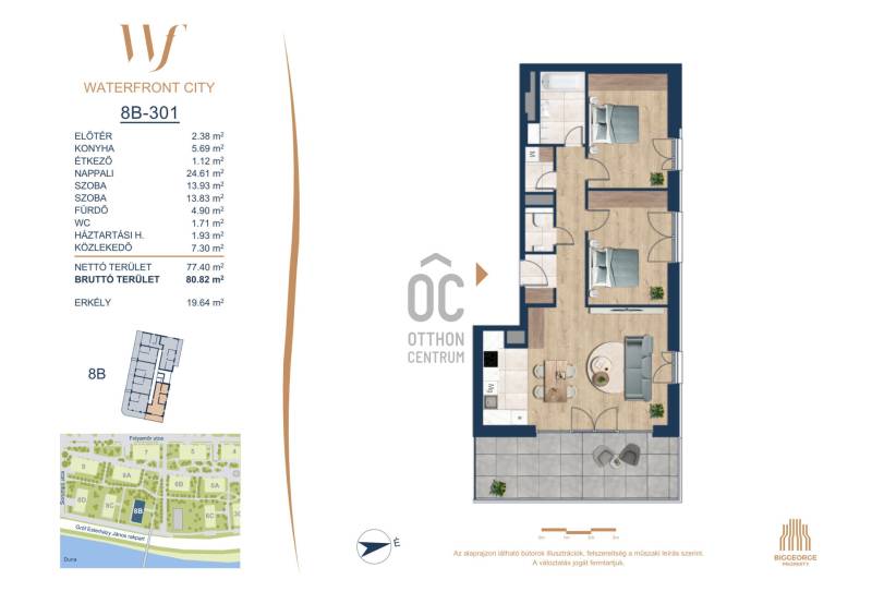 Projekt bemutatásaA projektrőlA Waterfront City egy új, modern városnegyed a 3. kerületben, ahol a természet közelsége és a városi kényelem tökéletes egyensúlyban van. A Duna-part közvetlen szomszédságában elhelyezkedő fejlesztés különleges atmoszférát kínál: a sétányt új épületek határolják, üzletekkel, kávézókkal és szolgáltatásokkal, amelyek élhető közösségi teret teremtenek.A 13 emeletes lakóépületből lenyűgöző örökpanoráma nyílik a budai hegyekre és a folyóra, a tágas teraszok pedig ideálisak a pihenéshez vagy a baráti összejövetelekhez. A zöldtetők, parkosított terek és fenntartható megoldások – mint az energiatakarékos rendszerek és okos otthon funkciók – mind hozzájárulnak a modern, környezettudatos életstílushoz.Látogass el értékesítési irodánkba, és tekintsd meg a városnegyed makettjét személyesen! Ismerd meg, milyen lesz az élet Budapest egyik legizgalmasabb új fejlesztésében!Óbuda szívébenKépzeld el, ahogy egy napsütéses délelőttön Óbuda szívében sétálsz, a Duna közelsége frissítően hat rád, miközben a Folyamőr utca, a Miklós tér és a Bogdáni út által határolt, öt hektáros területre érsz. A levegőben ott van a város történelme, mégis minden részletében a jövő hívogat.A 50 000 négyzetméteres területen egy hangulatos sétány vezet végig, amely egyenesen az óbudai Fő térre visz – mindössze 600 méterre. Ez a sétány nem csupán összeköt, hanem élményt nyújt: a Kolosy térről induló Óbudai Promenád részeként a város egyik legélhetőbb, legpezsgőbb szakaszán haladsz végig. És ha biciklivel érkeznél? A nemzetközi kerékpárút is itt halad el, Szentendre felé vezetve.Az 5. ütemben épülő 149 lakás mindegyike egyedi hangulatot kínál. Ahogy belépsz egy-egy otthonba, a hatalmas üvegfelületeken át beáradó fény és a tágas, szellős terek azonnal magukkal ragadnak. A kilátás? A Kaszap István park zöldje nyújt békét, míg a felsőbb emeletekről a Budai-hegység örökpanorámája tárul eléd – minden nap egy új festmény az ablakodban.A 6. ütemben 316 modern lakás épül, tágas teraszokkal és lenyűgöző kilátással a Dunára és a budai hegyekre. A lakók kényelmét őrszolgálat, kamerarendszer, mélygarázs, vendéglátóhelyek, belső park, játszótér és E-autó töltők szolgálják. Ez a projekt utolsó üteme, amely még közvetlen Duna-parti kapcsolattal rendelkezik.