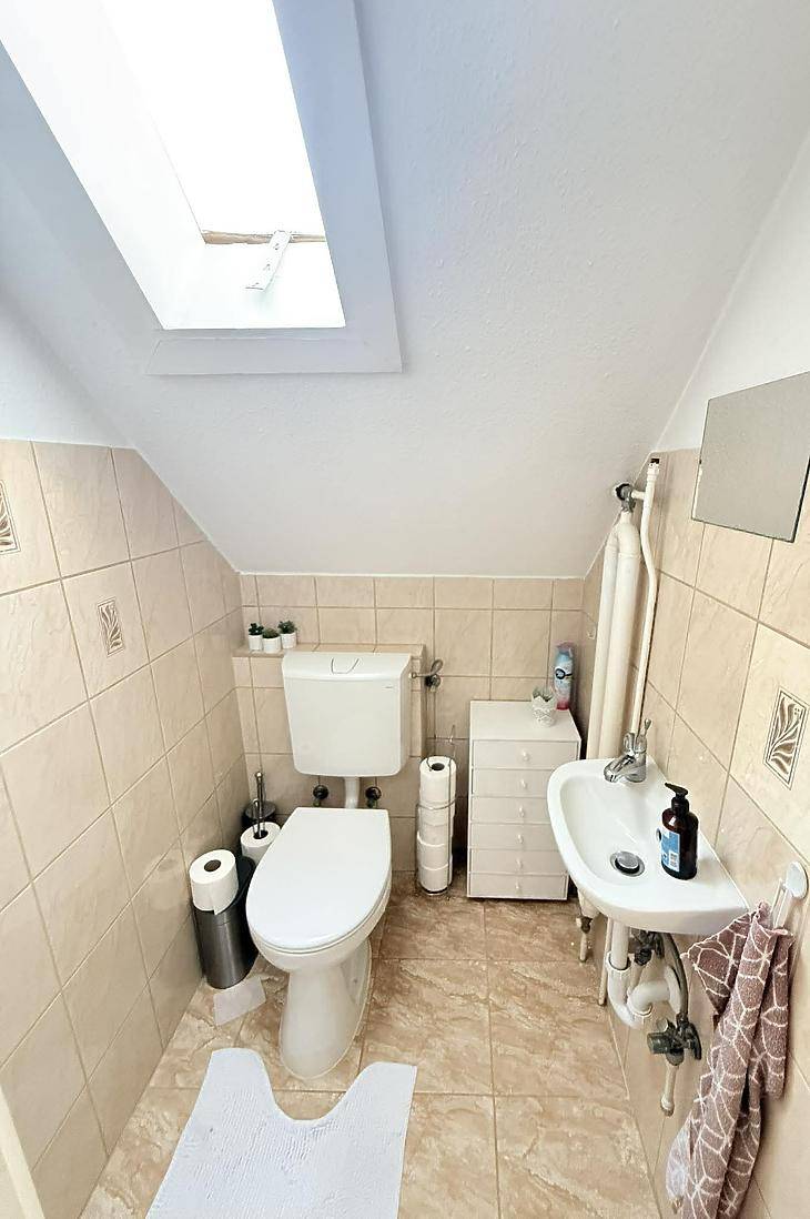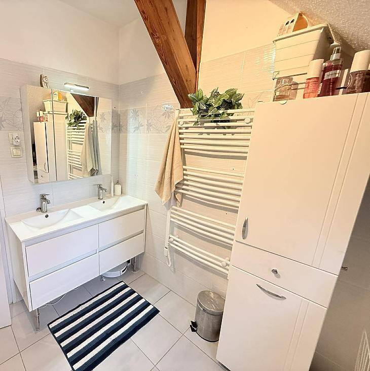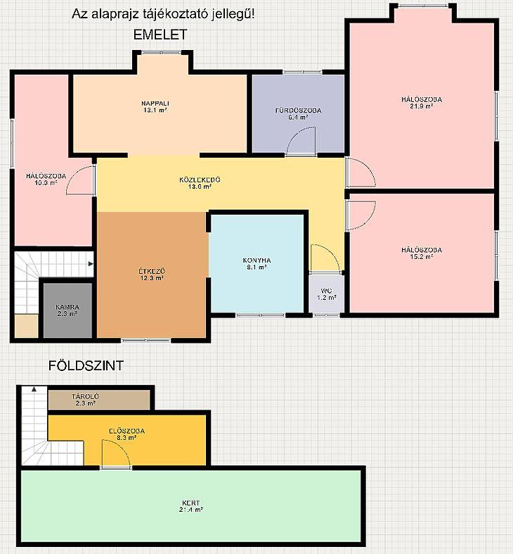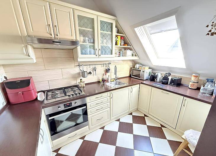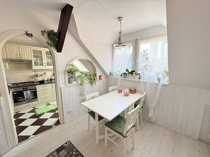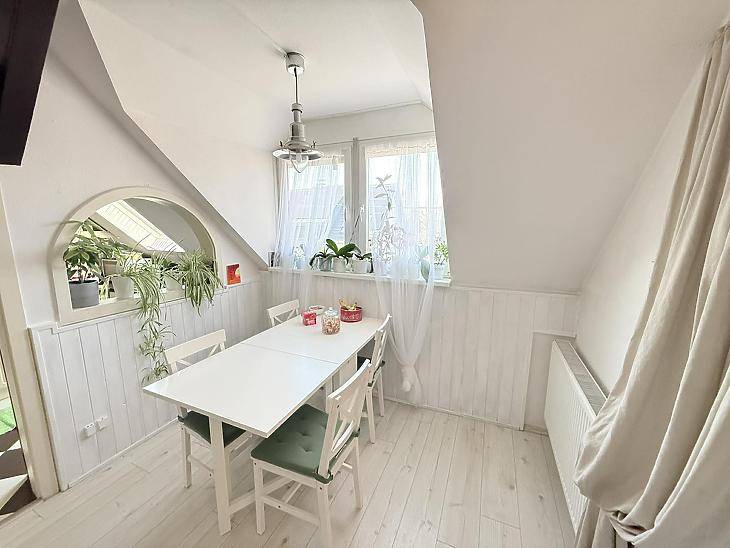 XVI. kerületben, Rákosszentmihály csendes, kertvárosi mellékutcájában eladó egy bruttó 100 m²-es, tégla építésű tetőtéri lakás.Teljes körű felújításon esett át, így azonnal költözhető állapotban várja új tulajdonosát. A lakás teljesen külön bejárattal rendelkezik, így egymástól jól elkülönül.Az elrendezése praktikus és jól élhető:• 3 külön nyíló szoba• nappali + étkező + konyha egy légtérben• fürdőszoba• külön WC• spejz• előszoba és előtérA lakáshoz tartozik:• saját előkert• 8 m²-es pince• padlás, amely további tárolásra kialakíthatóMűszaki jellemzők:• tégla építés• 15 cm-es hőszigetelés• műanyag nyílászárók redőnnyel és szúnyoghálóval• réz villanyvezetékek• biztonsági bejárati ajtó• gázkazános fűtés radiátorokkal• klíma• parketta a szobákban, járólap a többi helyiségbenA lakás összkomfortos, rezsije egyedi mérőórák alapján fizetendő, közös költség nincs.Tájolása kiváló, minden égtáj felé nyitott, ezért egész nap világos és napfényes.Jogilag rendezett: a lakások ügyvédi megosztással lettek különválasztva, így Otthon Start hitel igénybevételére is alkalmas lehet.Közlekedés:Pár perc sétára elérhető a 31, 92, 92A, 130, 131, 231, 277, 931, 996-os busz, amelyekkel a környék és a belváros is könnyen megközelíthető.Parkolás a közterületen ingyenesen megoldható.Irányár: 109,9 millió FtTovábbi információért vagy megtekintési időpont egyeztetéséhez keressen bizalommal!Vevőink részére a közvetítés díjtalan!A hirdetésben szereplő adatok tájékoztató jellegűek. |