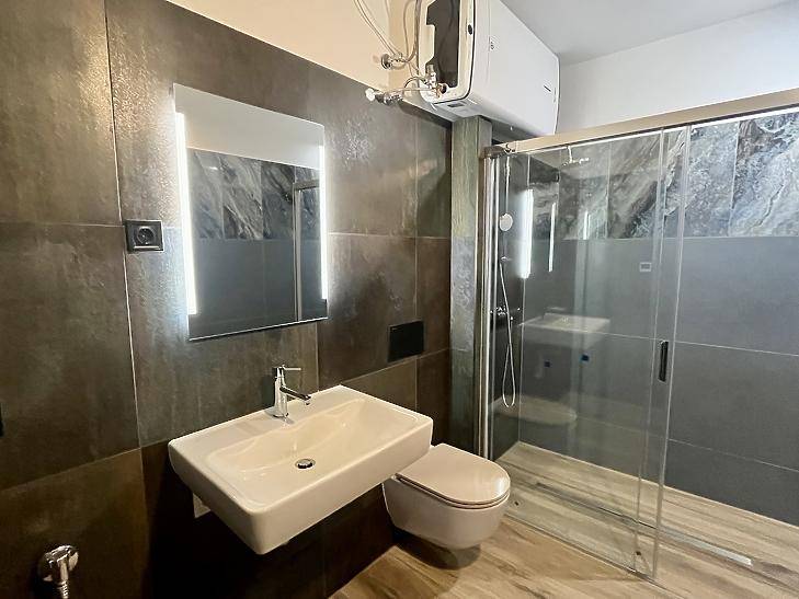 Felújított emeleti lakás terasszal Zuglóban!Eladó egy teljesen felújított, amerikai konyhás nappalis emeleti lakás Zuglóban, családi házas övezetben. Az ingatlan egy 90-es években épült, négylakásos kertes házban található, ahol még három lakás elérhető.A lakók közösen használhatják a hátsó kertet és egy kb. 60 m²-es napozóteraszt.Közlekedés: a buszmegálló 2 perc sétára van, a belváros kb. 15 perc alatt elérhető.A lakás műszakilag és esztétikailag teljesen felújított, külön víz- és villanyórával. Fűtése radiátoros, kiegészítve helyiségenként szabályozható elektromos padlófűtéssel. A fürdő minőségi szaniterekkel és Ariston Velis bojlerrel felszerelt.A lakás klíma kiállással, Lutec LED világítással, biztonsági bejárati ajtóval, Erkado beltéri ajtókkal és vízálló laminált padlóval készült, a konyhában és a fürdőben Sant Agostino burkolatok találhatók.Az ingatlan azonnal költözhető.Alaprajz tájékoztató jellegű! |