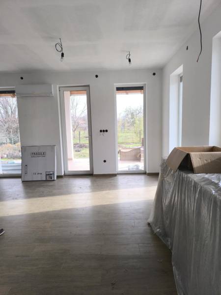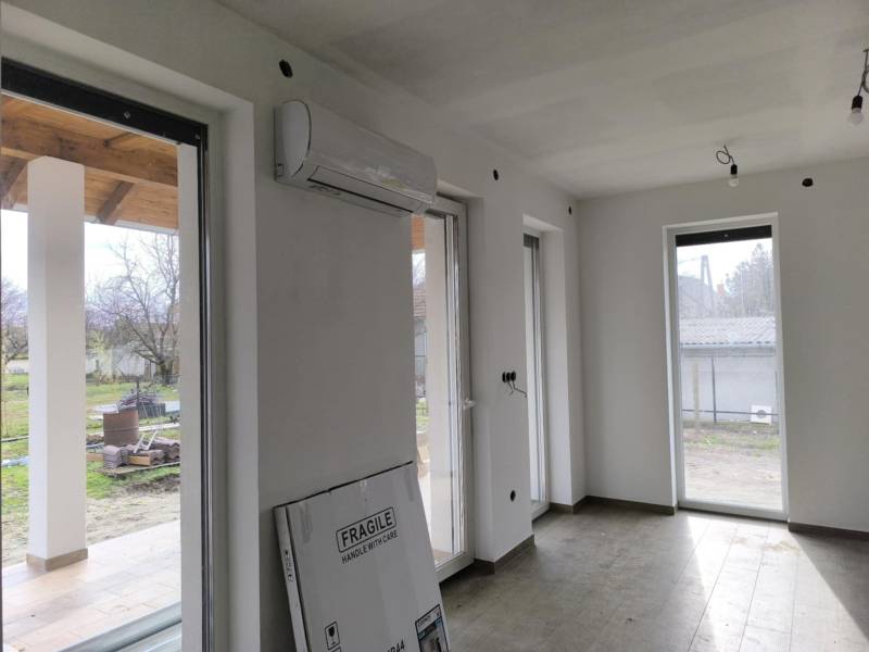 ALBERTIRSA – ÚJ ÉPÍTÉSŰ ÖNÁLLÓ CSALÁDI HÁZ ELADÓ!723 m²-es telken épülő, 74,4 m²-es modern családi ház, 15,5 m²-es terasszal. Minőségi alapok: vasbeton sávalap, Porotherm falazat, fafödém cellulóz szigeteléssel, Terrán tető, hőszigetelt homlokzat. Nyílászárók: fehér műanyag külső, fa belső.Helyiségek: amerikai konyhás nappali teraszkapcsolattal, 2 háló, fürdő, külön WC, közlekedő. Az ár tartalmazza:- Burkolatok: laminált padló 5.000 Ft/m², járólap/csempe 7.000 Ft/m²- Fehér festés- 2,8 kW napelem- Padlófűtés + kondenzációs kazán- 3,5 kW klíma Törölközőszárítós radiátor- 1×32 A elektromos hálózat- Redőny előkészítés- 2 WC, szaniterek 250.000 Ft-ig, épített zuhany- Viacolor járda kaputól a házig és teraszig. Egyedi igények teljesítése, megtekinthető referenciákkal. A képek az előző munka folyamatáról készültek! Az építkezés foglalózás után kezdődik, kivitelezés 6-8 hónap. Nyugati – 48 perc Budapest: 50 km, Ferihegy repülőtér: 35 km (M4 autópályán) Ne maradjon le erről a lehetőségről! Hívjon bátran hétvégén is: Alitisz Judit 0620 4004009 Nézze meg a képeket – és ha el tudja képzelni itt új otthonát, hívjon bizalommal! |