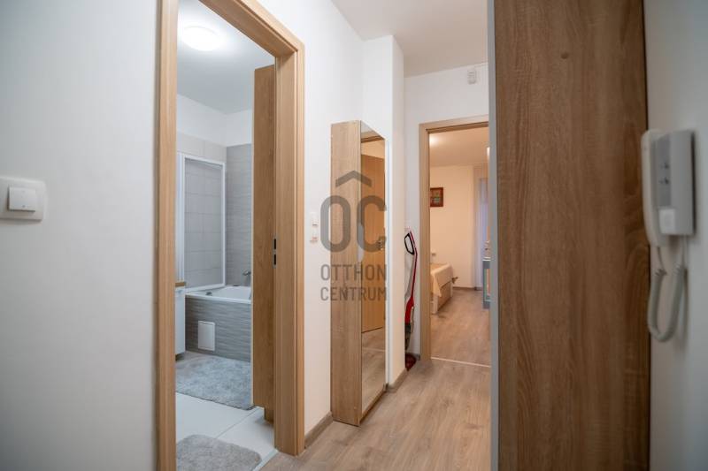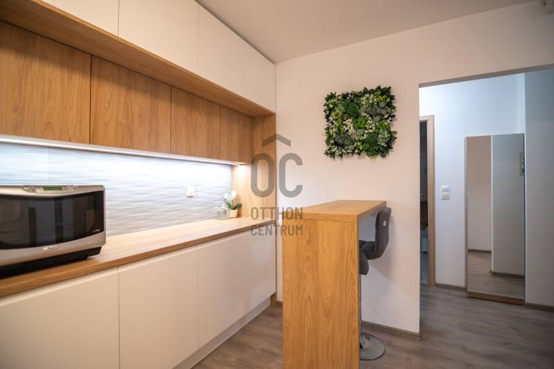 Budapest IX. kerületének közkedvelt rehabilitációs részén, 2022-ben épült, modern társasházban kínálunk megvételre egy első emeleti 54 m²-es, nappali + hálószobás, kiváló állapotú lakást, 18 m² privát kert- és teraszkapcsolattal.Főbb jellemzők:· 54 m² alapterület· Első emelet, lift· Nappali + külön hálószoba· 18 m² saját kert és terasz· 2022-ben épült társasház· Elektromos redőnyök szúnyoghálóval· Hűtő-fűtő klíma mindkét szobában· Riasztó berendezés, „okos otthon”· Üvegszálas internetBelső kialakítás:A konyhabútort, fürdőszobabútort és a hálószobai beépített szekrényt a WOODARTIS csapata készítette, egyedi tervezés alapján.A lakás rendkívül jó tárolási adottságokkal rendelkezik:· Beépített gardróbszekrény· Tágas konyhaszekrény· Ágyneműtartós kanapé· Fiókos hálószobai ágyA nappaliban található dohányzóasztal étkezőasztallá alakítható.A fürdőszobában kád található, amelyhez zuhanyzó paraván került felszerelésre.A beépített bútorok a vételár részét képezik. A nem beépített bútorok és elektromos berendezések külön megállapodás tárgyát képezik.Külön megvásárolható teremgarázs hely: 9.000.000 Ft.A lakás kiváló választás saját részre vagy befektetésnek is, a környék folyamatos fejlődése és jó bérbe adhatósága miatt.Megtekintéssel és részletekkel kapcsolatban keressen bizalommal. |