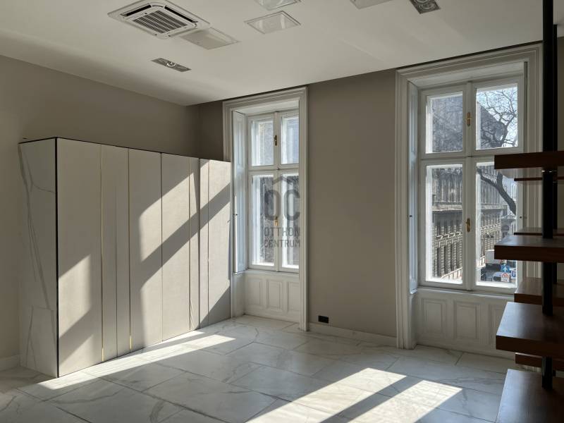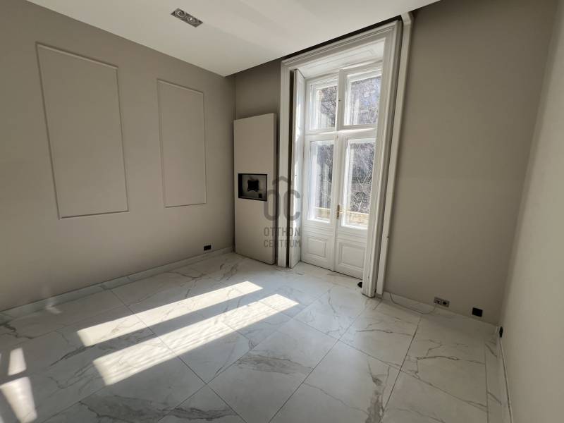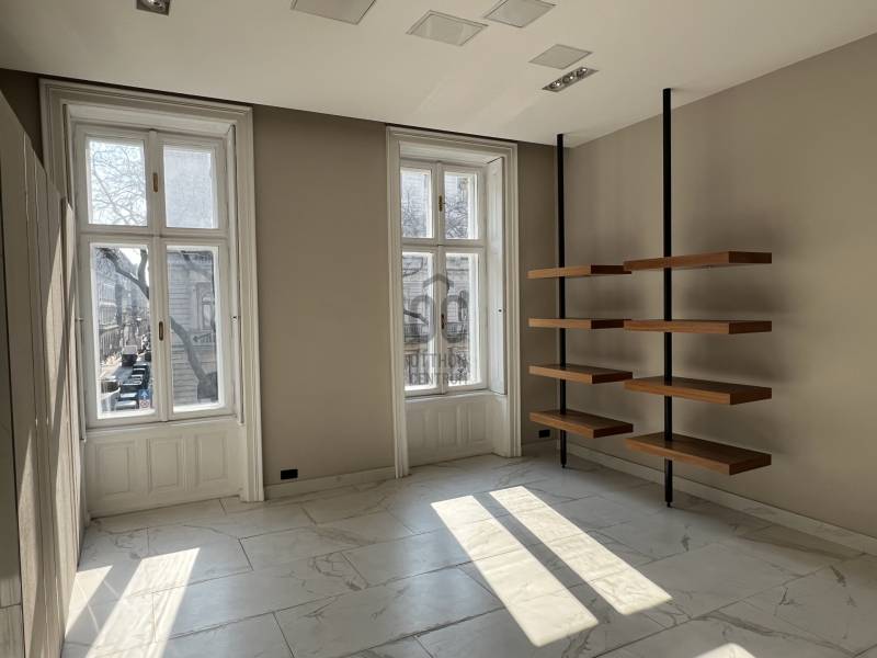 Eladó I. emeleti lakás az Andrássy úton!Az Andrássy út egyik legpatinásabb épületében kínálunk megvételre egy különleges hangulatú, 80 m²-es, erkélyes lakást az I. emeleten.A lakás két tágas szobával rendelkezik, amelyek nagy belmagasságuknak és kedvező tájolásuknak köszönhetően világosak és elegáns térérzetet biztosítanak. A két szoba alapterülete 31 m2 és 16 m2. A kisebb szobához kapcsolódó 5 m²-es erkély kellemes helyszínt nyújt reggeli kávézáshoz vagy esti kikapcsolódáshoz, miközben a környék egyedi belvárosi atmoszféráját élvezheti.Az ingatlan ideális választás lehet exkluzív belvárosi otthonnak, reprezentatív irodának vagy befektetésnek is, hiszen a környék Budapest egyik legkeresettebb része. A közelben található többek között az ikonikus Magyar Állami Operaház, számos elegáns étterem, kávézó és prémium üzlet.Az ingatlan jelenleg irodai funkcióknak megfelelő jellegű. A konyha tolóajtó mögé rejthető, az előtérben egy korábban recepciós állomásként funkcionáló pult kapott helyet. Az ingatlanban több tárolásra alkalmas nagy méretű beépített szekrény is található. A szobákban a fűtést hűtő-fűtő klíma biztosítja. Az előtér-konyha részen padlófűtés működik melyet gázcirkó működtet.KIVÁLÓ KÖZLEKEDÉSAz ingatlan elhelyezkedése tömegközlekedési szempontból kiemelkedő. A közvetlen közelben található az M1 metróvonal két megállója (Opera és Bajcsy-Zsilinszky út), amely néhány perc alatt elérhetővé teszi a belváros fő csomópontjait. Mindössze pár perc sétával elérhető a Deák Ferenc tér, ahol a város három metróvonala találkozik, így Budapest szinte bármely pontja gyorsan és átszállás nélkül megközelíthető.A közelben több busz- és trolibuszjárat is közlekedik (pl. 105, 210, 210B, 70, 78), valamint az Oktogon csomópontnál elérhető a 4–6-os villamos, amely Budapest egyik legfontosabb éjszaka is közlekedő villamosvonala.A kiváló infrastruktúrának köszönhetően autó nélkül is könnyedén elérhető a város bármely pontja, legyen szó munkáról, szórakozásról vagy kulturális programokról.Főbb jellemzők:- 80 m² alapterület- 2 szoba- 5 m² erkély- I. emelet- elrejthető konyha- patinás Andrássy úti épület- kiváló befektetési lehetőségHa szeretné a budapesti nagypolgári életérzést egy ikonikus sugárúton megtapasztalni, ez az ingatlan remek választás.Díjmentes, bankfüggetlen hiteltanácsadással támogatjuk vevő ügyfeleinket a számukra legelőnyösebb finanszírozási döntések meghozatalában. Opcionálisan igénybe vehető kiegészítő szolgáltatásainkkal – mint ügyvédi közreműködés, energetikai tanúsítvány vagy villamos biztonsági felülvizsgálat – teljes körű szakmai támogatást nyújtunk az adásvétel folyamatának minden egyes lépésénél. |