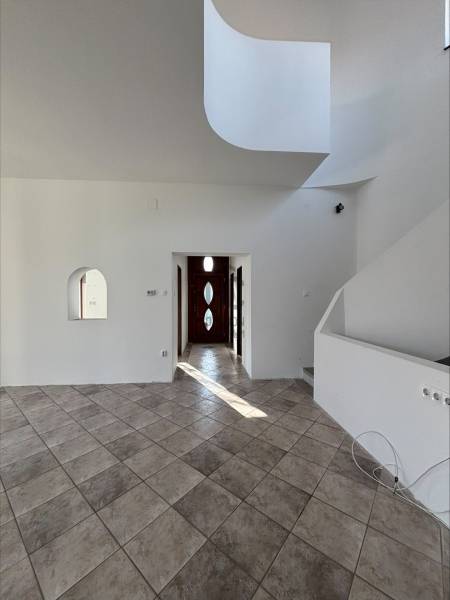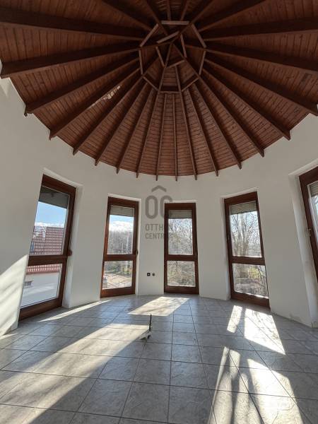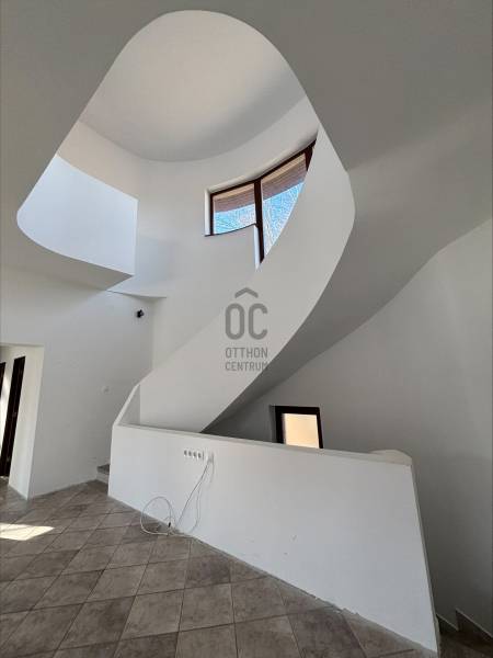 Gárdony főutcájáról nyíló, mégis elszeparált, 1688 m²-es telken kínálunk megvételre egy 360 m²-es, önálló családi házat, amely nem a megszokott formavilágot követi. Az ingatlan három teljes értékű lakószinttel, nagy terekkel, különleges építészeti megoldásokkal és egy önálló melléképülettel rendelkezik, így valódi életteret kínál azoknak, akik nem átlagos otthonra vágynak.A ház már kívülről is figyelemfelkeltő: tornyos kialakítása, egyedi arányai és karakteres megjelenése különleges arculatot ad az ingatlannak. Belül a térformálás szinte szoborszerű: a csigaszerű, exkluzív lépcső, a fa berakásos, kupolaszerű étkező és az íves vonalvezetések Makovecz-hangulatot idéző, meleg, természetközeli atmoszférát teremtenek.Ez az otthon azoknak szól, akik nagy terekre, szabadságra, kreatív lehetőségekre vágynak – ahol az élettér nem korlát, hanem inspiráció.Szintek és helyiségekPinceszint – önálló lakrész vagy wellness szintA pinceszint teljes értékű lakószint, ahol egy nappali–konyha–étkező található, jelenleg hobbiszobaként használva, de külön lakrészként vagy wellness szintként is kiválóan funkcionálhat.– nagy, kádas fürdőszoba– közvetlen kertkapcsolat– játszórész– egyedi megoldásként csúszda köti össze az első emeletet a földszinttel– kazántér, mosókonyha– kétállásos garázs– lépcsőházi közlekedőtérFöldszint – a ház központi élettereA földszint a ház lelke, ahol a terek és a fény találkoznak:– 44,5 m²-es nappali, közvetlen kapcsolattal a 35 m²-es teraszhoz– félköríves, teljes üvegfelületekkel határolt étkező, redőnyökkel– amerikai konyha (7 m²)– előszoba– panorámás fürdőszoba (11,2 m²)– 24,3 m²-es hálószoba, nagy panorámaablakokkal– gardróbszobaA nagy üvegfelületeknek köszönhetően a kert és a szemben lévő dombság látványa szinte a belső tér része.Emelet – alakítható, tágas privát zónaAz első emeleten jelenleg egy 61,4 m²-es egybefüggő nappali tér található, ugyanazokkal a félköríves, nagy üvegfelületekkel, mint a földszinten.– 11,8 m²-es terasz– 10,9 m²-es terasz– ezen a szinten további két hálószoba és egy fürdőszoba is helyet kapottA válaszfalak igény szerint mozgathatók, így akár két külön hálószoba vagy teljes privát lakrész is kialakítható.Melléképület – külön lakrész a telken belülA telken található egy 70 m²-es, téglaépítésű melléképület, amely már most is lakható:– konyha– nappali– fürdőszoba– nádtetős, parasztház jellegű kialakításKiváló lehetőség vendégháznak, nyári laknak, kamaszgyermeknek, idős szülőnek, vagy akár önálló bérbe adható egységnek is.Műszaki adatok– gázcirkó biztosítja a padlófűtést a teljes házban– egyes helyiségekben elektromos padlófűtés– hűtő-fűtő klímák– 3 teljes értékű fürdőszoba– fa nyílászárók, teljes körűen cserélve– redőnyök– víz, gáz, villany bekötve– aszfaltozott utca– nagy üvegfelületek, panorámás háló és fürdőszoba kert- és dombsági kilátássalElhelyezkedés– Gárdony főutcájáról nyíló utca– Spar, üzletek, kávézók, buszmegálló gyalogos távolságban– vízpart 1 km-en belül– mégis nyugodt, intim környezetKinek ideális ez az ingatlan?Ez a ház nem mindenkinek való és éppen ettől különleges.Ajánljuk azoknak, akik– nem sablonos otthont keresnek,– szeretik az egyedi építészeti megoldásokat,– nagy terekben gondolkodnak,– többgenerációs megoldást vagy külön lakrészeket szeretnének,– értékelik a kert méretét, az elszeparáltságot és a szabadságot.Ha egy olyan otthonra vágyik, amely karakteres, inspiráló és valódi életteret ad, ez az ingatlan megér egy személyes bejárást! Keressen bizalommal! |