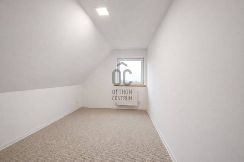 Eladó Csókakőn egy frissen elkészült, 593 m²-es telken egy 109,86 m²-es, könnyűszerkezetes családi ház, amely műszakilag korszerű, szigetelt, és egyedi adottságaival, valamint lenyűgöző panorámájával emelkedik ki a kínálatból.A ház ablakai Csókakő impozáns várára néznek, így a természet és a történelmi környezet harmóniája a mindennapok részévé válik.A ház egy kocsifelhajtón keresztül közelíthető meg, így intim, belső kerttel rendelkezik. A bejárat egy hangulatos télikertbe vezet, amely világos, barátságos fogadótérként szolgál. A földszinten tágas nappali–konyha kialakítás, egy hálószoba, valamint egy korszerű gépészeti helyiség található. A modern fürdőszoba káddal, zuhanyzóval és mellékhelyiséggel felszerelt.Az emeleten két hálószoba kapott helyet, ahonnan a panoráma minden napszakban különleges hangulatot kínál. Ezen a szinten egy második mellékhelyiség is rendelkezésre áll.A ház fűtéséről vízteres kandalló gondoskodik, 1 m³-es puffertartállyal, a földszinten padlófűtéssel, helyiségenként szabályozható termosztátokkal. A meleg vizet villanybojler szolgáltatja.A felső szint fűtése radiátorokkal megoldott, így ideális háló- vagy gyermekszobák kialakítására.A szintenkénti hűtő-fűtő klíma egész évben biztosítja az átmeneti időszak megfelelő komfortérzetét.A ház 3x20 A villamoshálózattal rendelkezik.Az udvar csendes, zöld környezetet biztosít, a természet közelsége folyamatosan érezhető. Ásott kút az udvaron. Fedett gépkocsibeálló kialakítására lehetőség van.Főbb előnyök: • Új építésű, még nem lakott ingatlan • Könnyűszerkezetes, korszerű, szigetelt kivitel • Páratlan kilátás • Modern, energiatakarékos gépészet • Nyugodt, természetközeli elhelyezkedés, intim belső kert • Ideális állandó otthonnak, nyaralónak vagy befektetésnekJöjjön, és nézze meg, amíg még megvan!#Csókakő #kandalló #panoráma #könnyűszerkezet #amerikaikonyhaEz az ingatlan a \"Felező csomag\" megbízási portfólióhoz tartozik. Részletek az Otthon Centrum weboldalán. |