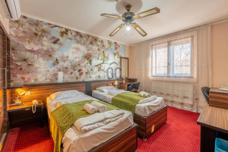 Eladó egy 7 szintes, 4 csillagos, egyedi stílusú business city és konferenciaszálloda, összesen 4 242 m² alapterülettel és 96 szobával, a XIV. kerület frekventált részén, kiváló infrastruktúrával és gyors belvárosi kapcsolattal.A szálloda modern, tágas terekkel, változatos kialakítású szobákkal és többfunkciós rendezvényhelyiségekkel rendelkezik, így ideális üzleti utazók, konferenciák, családi és céges események fogadására.Főbb jellemzők-104 db standard, superior, design szoba és apartman.(a teljes 7. szint)-7 szint, jól átgondolt elrendezésKonferenciákra és rendezvényekre alkalmas különtermekEgész évben stabil, visszatérő vendégkör-2 utcafronti üzlethelyiség – jelenleg bérbe advaKiemelkedő parkolási kapacitás:-12 férőhelyes mélygarázs-6 udvari parkoló-8 parkolóhely az épület előttEgyedi hangulat, modern komfort.A szálloda különlegességét a szobák egyedi hangulatvilága és design megoldásai adják. A tágas szobák különböző igényekhez igazodnak – két- és háromágyas kialakítás, utcai és belső udvari tájolás, design szobák és apartmanok egyaránt megtalálhatók.Szobai felszereltség:-LCD TV (műholdas csatornák)-Wifi-Telefon-Széf, minibár-Mennyezeti ventilátor-Hangszigetelt nyílászárók-Zuhanyzós fürdőszoba, hajszárítóRecepción igényelhető extra szolgáltatások.Lokáció előnyei-Budapest kiemelt rendezvény- és sportközpontjának közelében-Vásárközpontok, sportaréna és bevásárlóközpontok a környéken-Kiváló tömegközlekedés, metró néhány perc sétára-Gyors belvárosi elérésBefektetői előnyök-Bejáratott, folyamatosan működő szálloda-Stabil, egész éves vendégforgalom-Azonnali bevétel a kiadott üzlethelyiségekből-Erős lokáció és hosszú távú értékállóságA környék folyamatos fejlődése, a növekvő kereslet az elhelyezkedés garantálja, hogy az ingatlan hosszú távon is stabil, értékálló és magas hozamú befektetés.Egyedi igényekre szabott lakáshitelekkel állunk rendelkezésére.Bankfüggetlen Hitelcentrumunk az országban elérhető összes bank és hitelintézet ajánlatát versenyezteti az Ön számára díjmentesen.Munkatársaink nagy szakmai tapasztalattal, teljes körű CSOK PLUSZ és OTTHON START PROGRAM ügyintézéssel várják Önt előre egyeztetett időpontban akár a normál munkaidő után is. |
