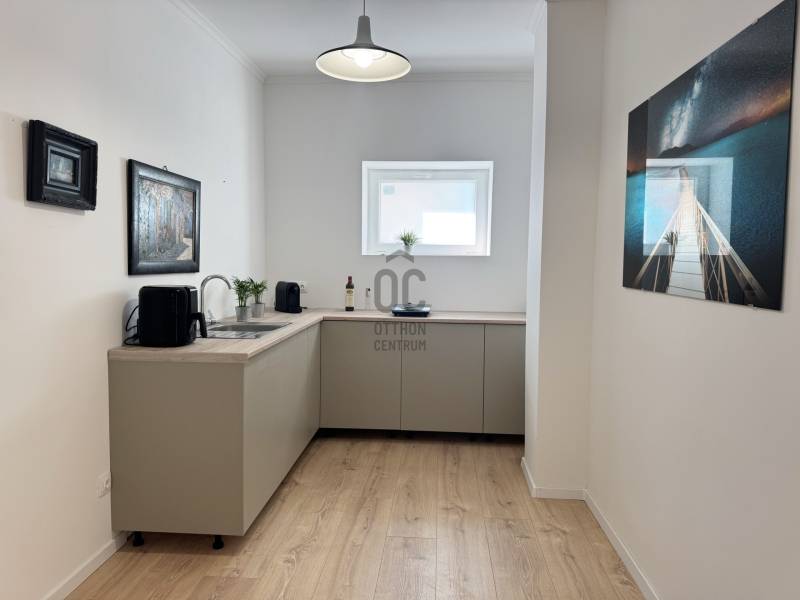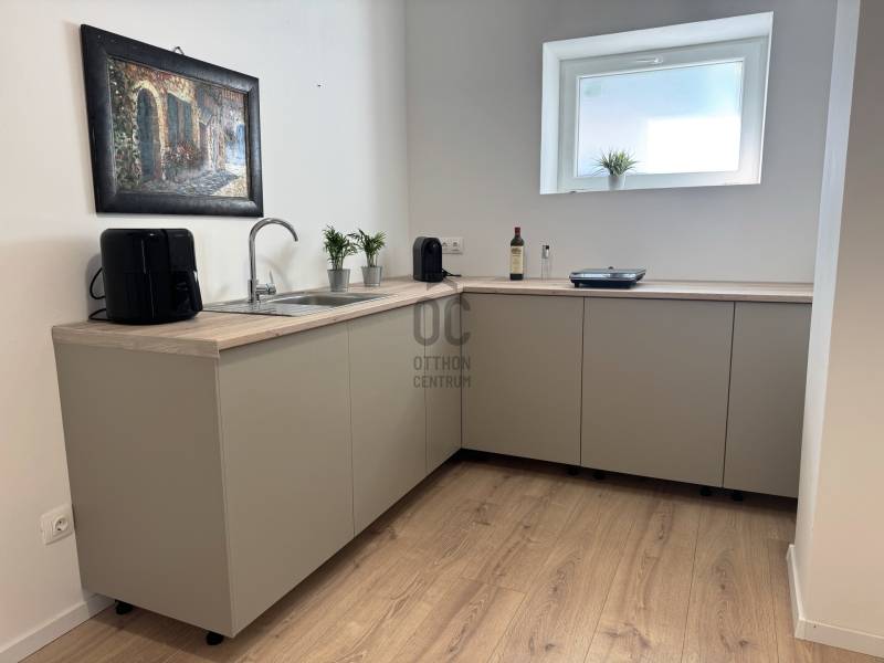 Hévíz belvárosának átmenő forgalomtól mentes részén kínáljuk megvételre ezt az igényesen, minden részletre kiterjedően felújított házat. Az ingatlan kiváló választás saját otthonnak és hosszú távon is biztonságos, értékálló befektetésnek.A sorház teljes körű, szerkezeti és gépészeti felújításon esett át, amely a tartósságot, az energiahatékonyságot és a modern komfortot egyaránt szolgálja.Az ingatlan belső tereinek kialakítása pedig jól átgondolt, praktikus és élhető. Alacsony fenntartási költségeinek és kiváló elhelyezkedésének köszönhetően ideális választás saját otthonnak, illetve befektetésnek is, kiadásra vagy nyaraltatásra egyaránt kiváló lehetőség.AZ INGATLAN FŐ JELLEMZŐI :-A ház alapterülete 67 m² + 15 m² terasz, 250 m² udvarral- 2 + 1 félszoba-Új tetőszerkezet-Fa födém , cserép fedéssel - 20 cm Födémszigetelés -10 cm vastag homlokzati hőszigetelés- Műanyag szerkezetű nyílászárók -Fűtés: infrafilmes padlófűtés, helyiségenként vezérelhető hőfokszabályzóval-a víz-, villany- és szennyvízvezetékek cseréje megtörtént-Vízálló laminált padlóburkolat-Nappaliból közvetlen kilépés a teraszra-2 db udvari gépkocsibeálló az udvarban.-Azonnal költözhetőA 67 m²-es lakótér optimálisan kihasznált:-Világos nappali, közvetlen teraszkapcsolattal-Hálószoba- Gardrób vagy második hálószoba-Konyha–étkező-Fürdőszoba-ElőszobaA 15 m²-es terasz a nappaliból nyílik, így tökéletes helyszíne lehet reggeli kávézásnak vagy esti kikapcsolódásnak.KIKNEK IDEÁLIS?-Akik belvárosi elhelyezkedést keresnek, de nem szeretnének zajt-Akik felújításmentes, azonnal költözhető ingatlant szeretnének-Befektetőknek, akik Hévíz egyik legkeresettebb részén vásárolnának |