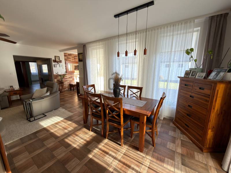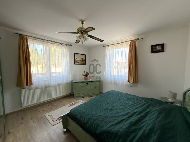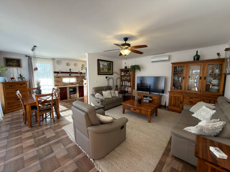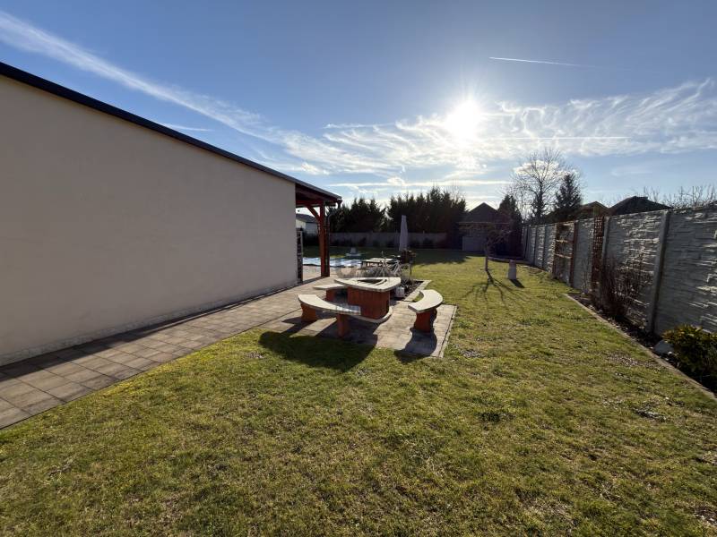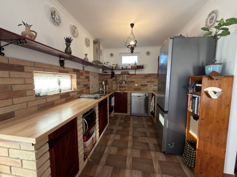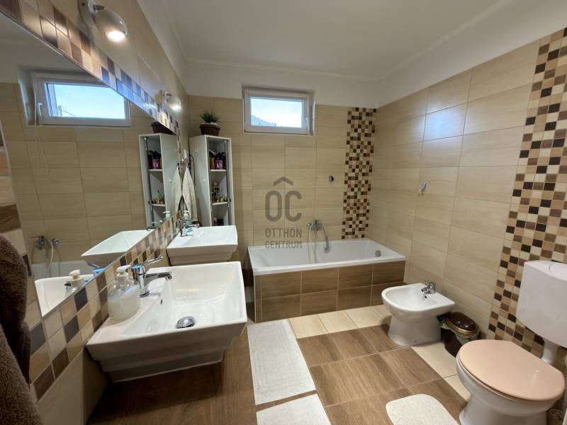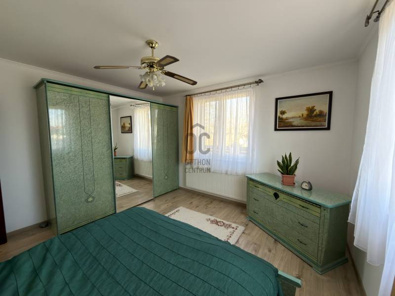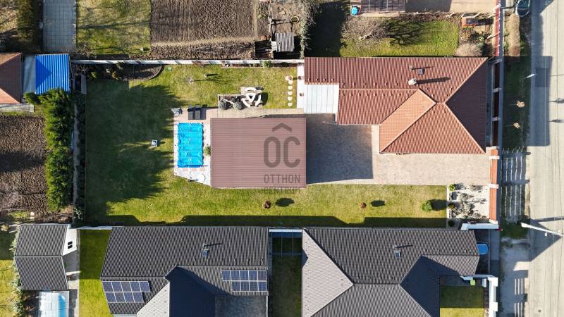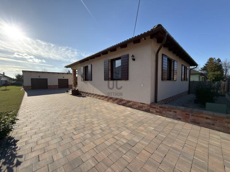 Győr-Ménfőcsanak – ahol minden adott egy minőségi otthonhozAhogy hajdanán Grétsy tanár úr mondta: „Álljunk meg egy szóra!”Csendes utca? Kiváló elhelyezkedés? Igényes kivitelezés? Rendezett udvar? Átgondolt belső terek?A válasz mindenre: igen.Győr–Ménfőcsanak egyik legszebb, nyugodt utcájában kínálunk megvételre egy egyszintes, kiváló adottságokkal rendelkező családi házat.A 116 m²-es lakótér átgondolt elosztású:három külön nyíló szoba, tágas nappali–konyha–étkező, két fürdőszoba WC-vel, gardrób, háztartási helyiség, valamint kényelmes közlekedők biztosítják a praktikus és élhető mindennapokat.A nappaliból közvetlen kapcsolat nyílik a 18 m²-es fedett teraszra, amely ideális helyszíne lehet a pihenésnek vagy a családi, baráti összejöveteleknek.A ház hűtéséről Midea tipusú hűtő-fűtő klíma gondoskodik, a melegről pedig Ariston kombi kazán ( padló és radiátoros hő leadás). Kandalló beépítésre is van lehetőség, mivel a kémény már kiépítésre került.Az 1045 m²-es, sík fekvésű, parkosított telek rendezett és gondozott. Az udvaron egy dupla, szerelőaknás garázs található, amely akár vállalkozási célra is kiváló lehetőséget biztosít, továbbá egy kerti tároló is helyet kapott.A nyári időszak kényelméről süllyesztett medence gondoskodik, a kert pedig valódi privát életteret biztosít tulajdonosának. A kert folyamatos fríssességéről Hunter automata öntözőrendszer gondoskodik. Az utcafronti alumínium kerítés pedig Hörmann automatikával van ellátva. A ház tehermentes, rövid időn belül költözhető!Ez az ingatlan ideális választás mindazok számára, akik csendes környezetben, mégis kiváló infrastruktúrával rendelkező városrészben keresnek igényes, azonnal élhető otthont.Hitelre van szüksége?Az Otthon Centrum, az ország egyik legnagyobb és legmegbízhatóbb hitelközvetítője, teljes körű és díjmentes hitelügyintézéssel, valamint biztosításkötéssel áll rendelkezésére.Kérje kollégáinktól személyre szabott ajánlatát, és találja meg a legjobb megoldást gyorsan és egyszerűen. |