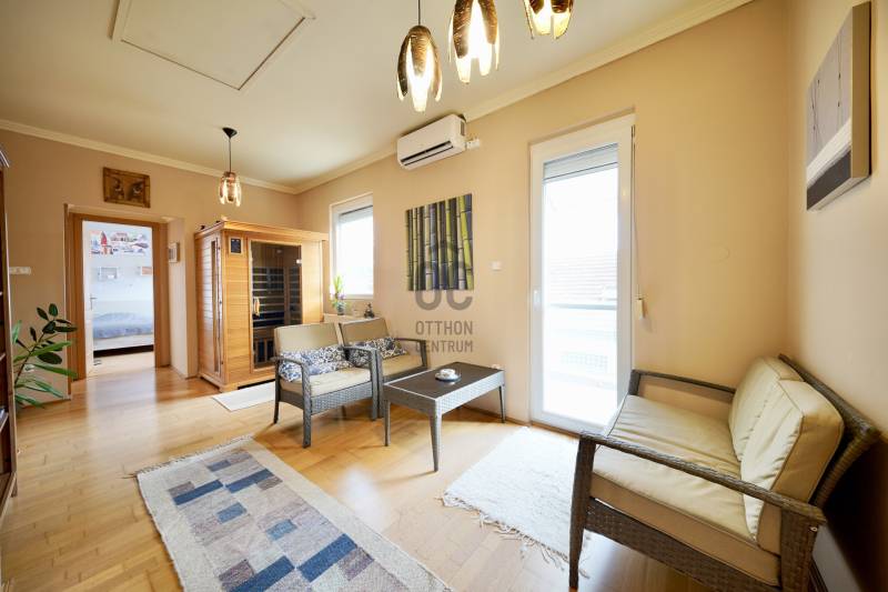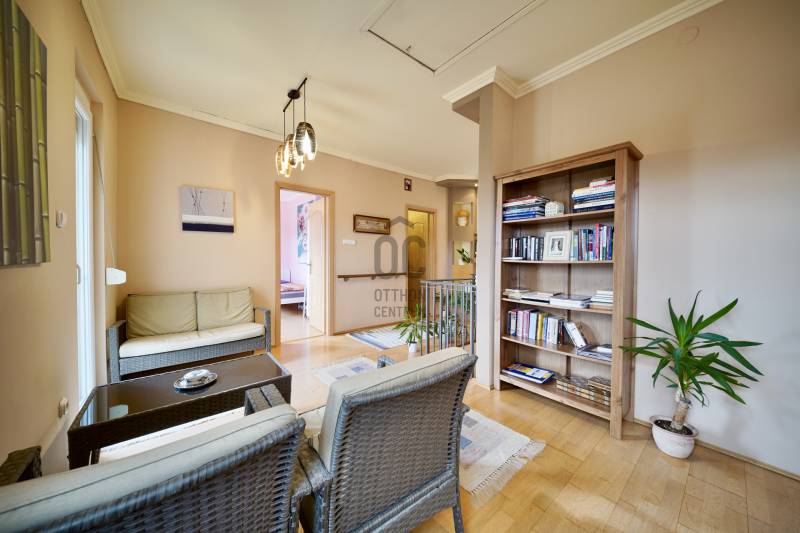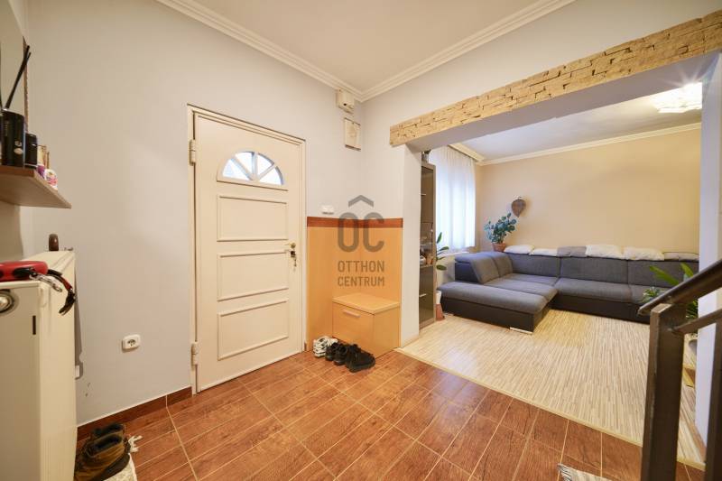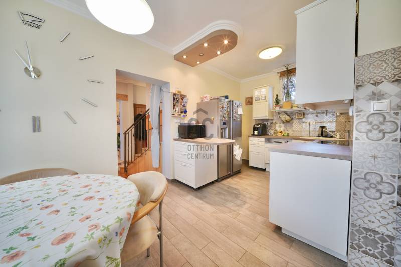 Solymár csendes, mégis központi részén, a Vasút utcában kínálunk megvételre egy kétszintes, jó állapotú, téglából épült, középső de még is záró sorházi otthont, 211 m²-es saját telekkel.Az ingatlan hasznos alapterülete 154 m², mely kényelmes életteret biztosít: 5 szoba, 2 fürdőszoba, 10 m²-es terasz és 3,8 m²-es erkély áll rendelkezésre. A 270 cm-es belmagasság kellemes térérzetet ad.Tulajdoni lap szerint jelenleg 88 m² szerepel, a tényleges, hasznos alapterület 154 m². A tulajdoni lapon feltüntetett alapterület módosítása folyamatban van.Műszaki tartalom30-as tégla falazat + 8 cm hőszigetelésműanyag nyílászárók szúnyoghálóval és redőnnyeltetőtéri VELUX ablakokon elektromos árnyékoló rolókondenzációs gázcirkó 60 literes víztartállyaléjszakai áram ez sokat segít az energia felhasználásbanExtrákhangulatos kandallóinfra szaunakerti sütögetőóriási egyedi beépített szekrény az egyik fenti hálószobába1 garázs + 2 felszíni beállótermészet közelsége sok túra és kirándulóási lehetőségnincs átjárás a szomszédok által Lokáció és közlekedésA közelben megtalálható többek között a SPAR Magyarország, Lidl Magyarország, Rossmann Magyarország, valamint pékségek, gyógyszertár és egyéb mindennapi szolgáltatások – a bevásárlás gyorsan és kényelmesen megoldható.A közlekedés kiemelkedően jó: a vasútállomás néhány perc távolságra található, ahonnan a Nyugati pályaudvar kb. 30 perc alatt elérhető vonattal. Emellett buszjáratok is rendelkezésre állnak, autóval pedig gyorsan elérhető Budapest.Ideális választás családok számára, akik nyugodt, kertvárosi környezetben szeretnének élni, de fontos számukra a kiváló infrastruktúra és a gyors fővárosi kapcsolat.Ez az ingatlan a \"Felező csomag\" megbízási portfólióhoz tartozik. Részletek az Otthon Centrum weboldalán. |