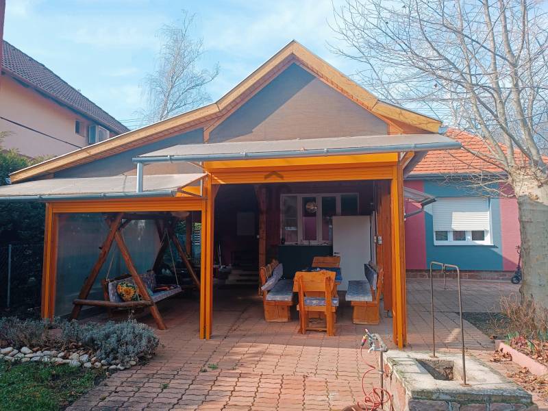 Ábrahámhegy egykori kikötőépülete egy kő falazatú kis villaépület volt a századfordulón. A régi térképek tanulsága szerint ezen épülettel szemben indult azon kijáró, amelyről a vízi szállítást akkortájt megoldották.Ezen épület ma már egészen más arcát mutatja, bár a szemfülesek megtalálják benne azon részleteket, amelyek tanúskodnak az akkori építőmesterségről, a telek pedig mit sem változott azóta, most is a Balaton partjáig fut, saját stéggel a végén.A vastag falazaton belül ma már egy teljesen felújított, modern, tágas és napfényes lakóházat találunk, amelynek a belmagassága 290 cm! A lakóépület hasznos alapterülete 56 nm, amelyben tágas nappali, napfényes étkező és két nagy hálószoba kapott helyet a konyha és a fürdőszoba mellett.A bejárat előtt kényelmes, árnyas, fedett, 22 nm-es teraszt alakítottak ki, ahol egy egész család és a vendégsereg elfér.A telken egy konyhával, fürdőszobával felszerelt vendégház is van, valamint háztartási helyiség és egy tágas, mindent elnyelő tároló a csónakoknak, kajakoknak, és minden egyéb vízi és szárazföldi felszerelésnek.A telek egy almafás gyümölcsössel folytatódik, majd a nádas felé még egy zárható vízieszköz-tároló található. A saját, kizárólagos használatú 12 nm-es engedélyes stég végül a nyílt Balaton felé enged szabad utat. A terület 1462 nm-es, Üh-01-es besorolás alá esik, így 15%-ban beépíthető!A mai kívánalmaknak megfelelően az ingatlan technikai jellemzői is garantálnak minden kényelmet:Garázsépület, kövezett bejáró, távirányítós tolókapu, központi kódos zárrendszer, öntözőberendezés a teljes kertben, teraszlezáró rolórendszer, központi gázfűtés, hűtő-fűtő klímák minden helyiségben, spotlámpás világítórendszer, felszerelt konyha, mosó- és szárítógép, hőszigetelt falak, 3 rétegű thermo nyílászárók, mindez szinte új állapotban!Az ingatlan egyedülálló a maga nemében! Horgászoknak, horgásztatóknak, horgászegyesületeknek és Balatonimádóknak kihagyhatatlan lehetőség! |