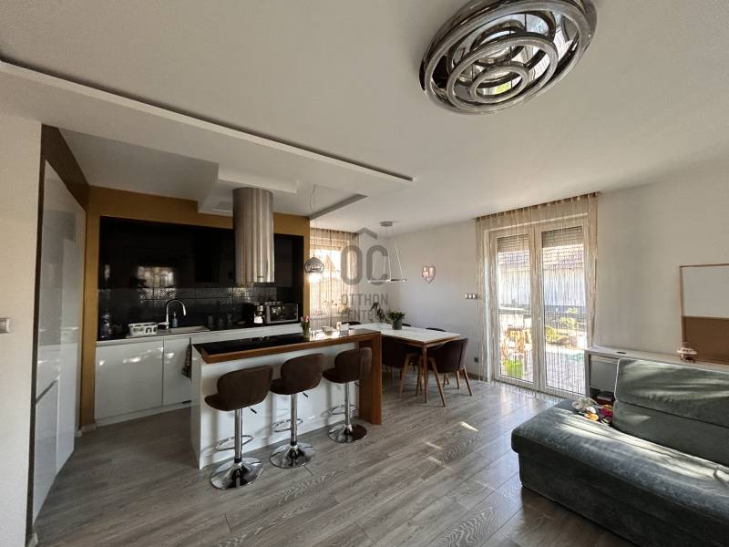 Ingatlan jellemzői:- nettó 83 nm- tégla falazat, külső hőszigetelés- 2017-ben került átadásra, első tulajdonosok lakják- földszinten: amerikai konyha+ nappali, fürdőszoba és wc került kialakításra- nappaliban lévő tölgyfa bútor a vételár része- emeleten : 3 külön nyíló hálószoba és fürdőszoba ( Hansgrohe csaptelepek és Geberit falba épített gépészet)- kondenzációs gázkazánnal történik az ingatlan fűtése , földszinten padlófűtéssel, az emeleten radiátorral- minden szoba hűtő-fűtő klímával felszerelt- lakáshoz tartozik egy 200nm-es saját használatú zárt udvar- udvaron épített játszótér csúszdával, mászókával, hintával, homokozóval , illetve egy szerszámtároló faház, mellette fedett pihenő (gazebo)- parkosított udvar öntözőrendszerrel ellátott- nappalihoz közvetlenül csatlakozik egy 25 nm-es terasz napvitorlával- lakáshoz tartozik egy garázs és egy beálló a közös udvarbanSzeretne a belváros közelében élni igényes otthonban, keressen bizalommal! Irodánkban teljes körű ügyintézéssel várjuk bankfüggetlen tanácsadónknál. A hirdetésben szereplő információk a megbízótól kapott adatok alapján készültek, pontosságukért felelősséget nem vállalunk! |