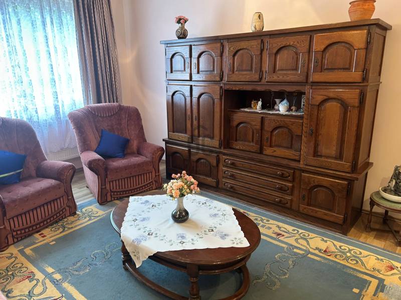 Megvételre kínálok Kisvárdán, a kis állomás környékén, csendes mellékutcában, egy, a 80 -as években épült, palával fedett családi házat 1443 nm-es, 16 méter széles telken. Az épületet 2018 -ban felújították, külső és belső (plafon) 5 cm -s szigeteléssel látták el, a víz és fűtésrendszert korszerűsítették, a külső nyílászárókat hőszigetelt műanyagra cserélték. A belső elrendezése átgondolt, a szobákat laminált padlóval, a többi helyiséget (az előszobát, a konyha-étkezőt, a külön wc-t és a fürdőszobát) járólappal burkolták. A melegről központi fűtés gondoskodik gázkazánnal, valamint található az előszobában egy vaskandalló is. A rendezett udvaron tágas, 28 nm-es garázs-tároló található. Kisvárda eladó családi házAz ingatlanról készült videó megtekinthető: http://youtu.be/-oAvP587Tdc |