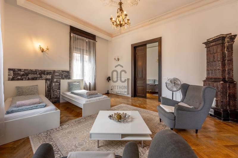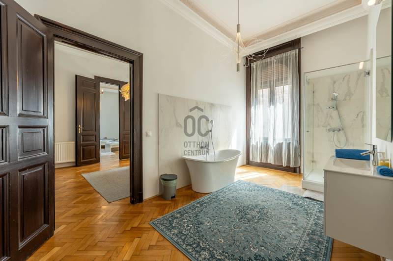 Budapest V. kerületének egyik legpatinásabb részén, a Sörház utcában kínálunk megvételre egy valóságban 189 m² (tulajdoni lapon 174 m²-es), 4 szobás, 3 fürdőszobás, liftes társasházban található, kiváló adottságú nagypolgári lakást, amely a klasszikus eleganciát ötvözi a tágas, jól alakítható terekkel.A lakás előtti függő folyosón kialakítható egy intim 8 m²-es teraszrész.Az ingatlan egyik legkiemelkedőbb jellemzője a lenyűgöző, 4 méteres belmagasság, amely páratlan térérzetet és világosságot biztosít. A lakás elosztása kiváló: az 4 tágas szoba ( az ötödiket jelenleg átalakították fürdőszobának) ideális családi otthonnak, irodának vagy akár reprezentatív célokra is.A lakás elegáns megjelenésű, igényes kialakítású, nagy terekkel rendelkezik, amelyek számos berendezési és átalakítási lehetőséget kínálnak. Az utcai nézetű helyiségek világosak, a keleti tájolás pedig kellemes természetes fényt biztosít a nap jelentős részében.A lakáshoz tartozik egy 8,16 m²-es terasz, amely ritkaságnak számít a belvárosi ingatlanok között, és ideális helyszín egy nyugodt kávézáshoz vagy pihenéshez.Az épület liftes, rendezett állapotú, amely tovább növeli a komfortérzetet. Az ingatlan per- és tehermentes, így azonnal költözhető, ami különösen nagy előnyt jelent.A lokáció kivételes: Belváros Budapest egyik legértékállóbb és legkeresettebb része, ahol minden karnyújtásnyira elérhető – éttermek, kávézók, üzletek, kulturális intézmények, valamint kiváló közlekedési kapcsolatok. A Duna-part, sétálóutcák és a város ikonikus helyszínei mind néhány perc alatt megközelíthetők.Ez az ingatlan ideális választás mindazok számára, akik egy nagyvonalú, elegáns, kiváló elhelyezkedésű lakást keresnek Budapest szívében – akár saját célra, akár befektetésként.Egyedi igényekre szabott lakáshitelekkel állunk rendelkezésére. Bankfüggetlen Hitelcentrumunk az országban elérhető összes bank és hitelintézet ajánlatát versenyezteti az Ön számára díjmentesen. Munkatársaink nagy szakmai tapasztalattal, teljes körű CSOK Plusz és Otthon Start Program ügyintézéssel várják Önt előre egyeztetett időpontban, akár a normál munkaidő után is. |