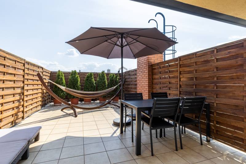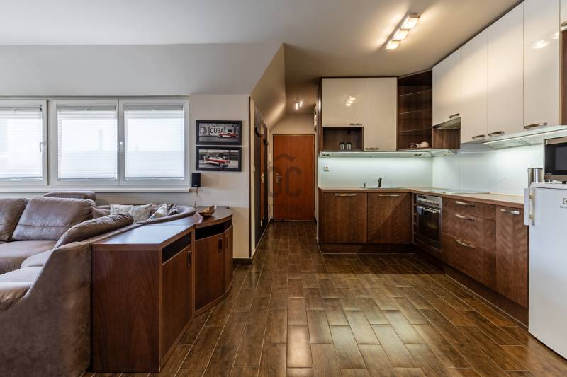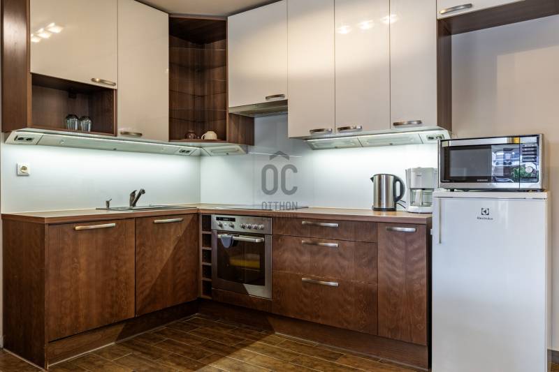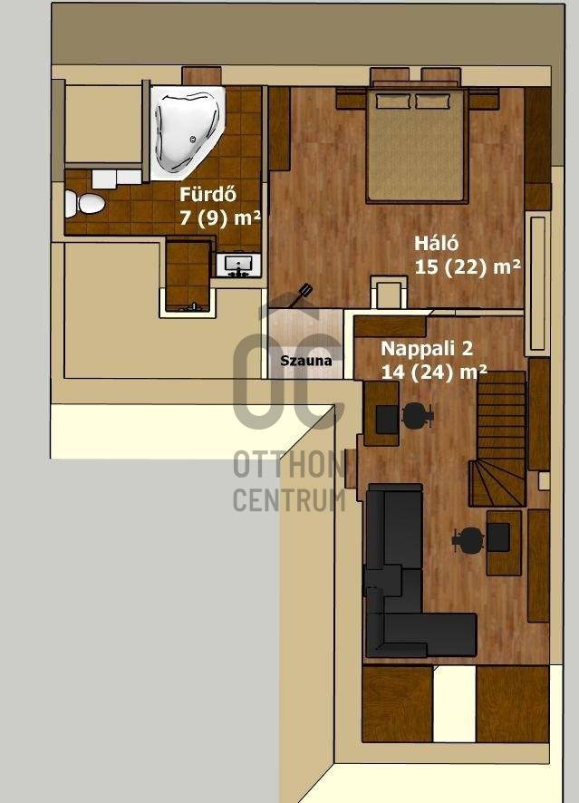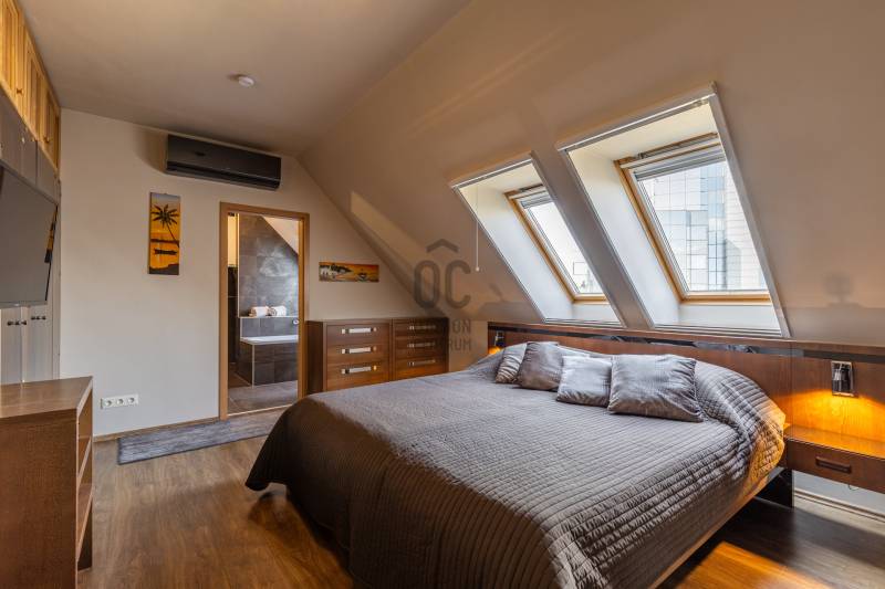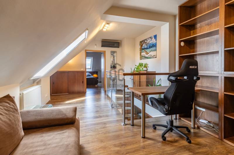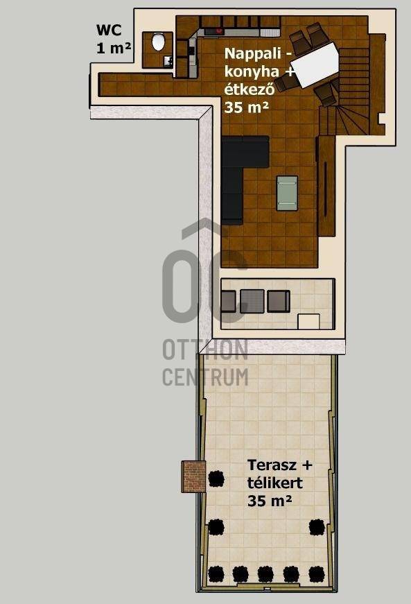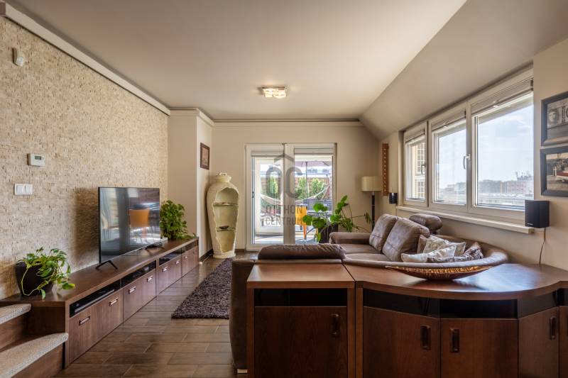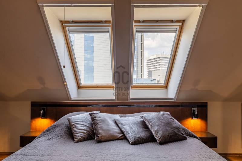 Egy szinttel a hétköznapok felett – saját szauna, letisztult terek és egy hely, ahol jó megérkezni. Üdv itthon! RÖVID ÖSSZEFOGLALÓBudapest XIII. kerületében, a Göncz Árpád Városközpontban, a Teve utcában található ez a legfelső szinti, nettó 72 m²-es, kétszintes lakás, amelyhez egy 35 m²-es, privát terasz kapcsolódik. A liftes, portaszolgálatos társasházban elhelyezkedő ingatlan újszerű állapotú, teljesen berendezett, 3 szobás kialakítású, délkeleti tájolásának köszönhetően világos terekkel és hálójából budai hegyekre nyíló kilátással rendelkezik. Teremgarázshely opcionálisan megvásárolható a lakáshoz.Elfoglalt? Távolról is szívesen kapna mélyebb betekintést a lakásba? Keressen meg és küldöm az ingatlan 3D bejárását, így fotelja kényelméből is megtekintheti.ANGYALFÖLDA XIII. kerületnek ez a része régóta stabil választás azoknak, akik egyszerre keresik a jól szervezett városi infrastruktúrát és a kiszámítható, élhető környezetet. A Teve utca a Göncz Árpád városközpontban helyezkedik el, ahol az M3 metró, az 1-es villamos, valamint a 26-os, 32-es, 34-es, 106-os és 115-ös buszjáratok néhány perc sétával elérhetők. Innen a belváros – például a Deák Ferenc tér – nagyjából 10–12 perc alatt megközelíthető, míg az 1-es villamos révén Buda irányába is gyors és közvetlen az átjárás.A közvetlen környezet valóban a mindennapi működésről szól: a ház közelében több kisebb üzlet, élelmiszerbolt, pékség, kávézó és gyorsétterem található, így a napi bevásárlás vagy egy gyors ebéd néhány perc alatt megoldható. A Váci úti irodafolyosó közelsége miatt a szolgáltatások kínálata folyamatosan bővül, ami hosszú távon is fenntartja a környék élhetőségét és értékét.A közeli Duna-part néhány perc alatt elérhető, ahonnan a Margitsziget is könnyen megközelíthető – futásra, sétára vagy akár egy nyugodtabb kikapcsolódásra is ideális választás. A lokáció egyik legnagyobb előnye a kettőssége: nappal aktív és jól szervezett, este viszont visszafogottabb, élhető ritmust kínál – ami hosszú távon saját használatra és kiadás szempontjából is kiszámítható értéket jelent.ÉPÜLETA liftes, portaszolgálattal működő társasház a Váci úti irodafolyosó egyik jól szervezett, modern épülete, ahol a működés és a használhatóság legalább olyan fontos, mint a megjelenés. A portaszolgálat a mindennapokban is érezhető pluszt ad: csomagátvétel, kontrollált beléptetés, rendezett közös terek – ezek együtt egy olyan biztonságosabb, kiszámíthatóbb lakókörnyezetet teremtenek, ami ebben a városi közegben külön érték.Az épület földszintjén működő szolgáltatások – kisbolt, pékség– valódi kényelmet jelentenek a hétköznapokban, ugyanakkor a lakószinteken ez már nem jelenik meg zavaró módon, a lakófunkció egyértelműen elkülönül.A mélygarázsos parkolás ebben a környezetben nemcsak kényelmi kérdés, hanem praktikus előny is: kiszámíthatóbbá teszi a napi közlekedést, és hosszabb távon is növeli az ingatlan használati és bérbeadhatósági értékét.OTTHONA lakásba érkezve az alsó szint egyértelműen a közös tereké: a nappali, a konyha és az étkező egy légtérben helyezkedik el, jól használható, átlátható elrendezéssel. A tér mérete és arányai lehetővé teszik, hogy egyszerre legyen kényelmes a mindennapokban és alkalmas vendégfogadásra is.Innen nyílik a nagy méretű terasz, amely valóban a lakás szerves része, nem csak egy kiegészítő elem. A növényekkel kialakított, öntözőrendszerrel ellátott külső tér használható reggelihez, pihenéshez vagy akár esti beszélgetésekhez is – egy olyan plusz, ami a városi lakásoknál ritkán adott ebben a méretben.A felső szint már egy visszavonulóbb, privátabb világ. A előtér–dolgozó külön szinten, így jól elkülönül a lenti élettértől, ami akár otthoni munkavégzésnél, akár napi ritmus szempontjából is előnyt jelent. A hálószoba mérete és kialakítása kényelmes, hosszabb távon is jól élhető teret ad, amelyet a beépített infraszauna tesz igazán egyedivé. A fürdőszoba szintén tágas, külön zuhanyzóval és káddal, így nem kompromisszumos, hanem valóban használható mindennapi tér.A lakás egészében egységes, átgondolt kialakítás jelenik meg: a beépített bútorok, a gépesített konyha, a klímás hűtés-fűtés, az elektromos redőnyök és a szúnyoghálók mind a kényelmet szolgálják, miközben a terek arányai és a két szint logikája hosszú távon is jól élhető struktúrát adnak.Visszafogottan elegáns stílus határozza meg a lakás hangulatát. A világos alapfelületek, a meleg tónusú burkolatok és a sötétebb bútorok kontrasztja kiegyensúlyozott, jól élhető teret hoz létre. Nem hivalkodó, inkább nyugodt és átgondolt – az a típus, ami hosszabb távon sem fáraszt.A nappali és az étkező tereiben a természetes fény dominál, különösen a délnyugati tájolásnak köszönhetően, ami délután és este ad egy kellemes, melegebb fényt a lakásnak. A textíliák, szőnyegek és világítás finoman egészítik ki a teret.Egyértelműen intimebb hangulatú a felső szint, a dolgozó és a háló tere elkülönül, csendesebb, visszafogottabb karaktert kap. Itt jelenik meg legerősebben az a „visszavonulás” érzés, amit a szauna még tovább erősít.A lakás fenntartási költségei: közös költség 43 575 Ft/hó, víz, villany, fűtés egyedi fogyasztás alapján fizetendő.Opcionálisan megvásárolható teremgarázshely, melynek ára 10 M Ft.Kérdések, és megtekintési szándék esetén várom hívását!--------------------------------Díjmentes, bankfüggetlen hiteltanácsadással támogatjuk vevő ügyfeleinket a számukra legelőn